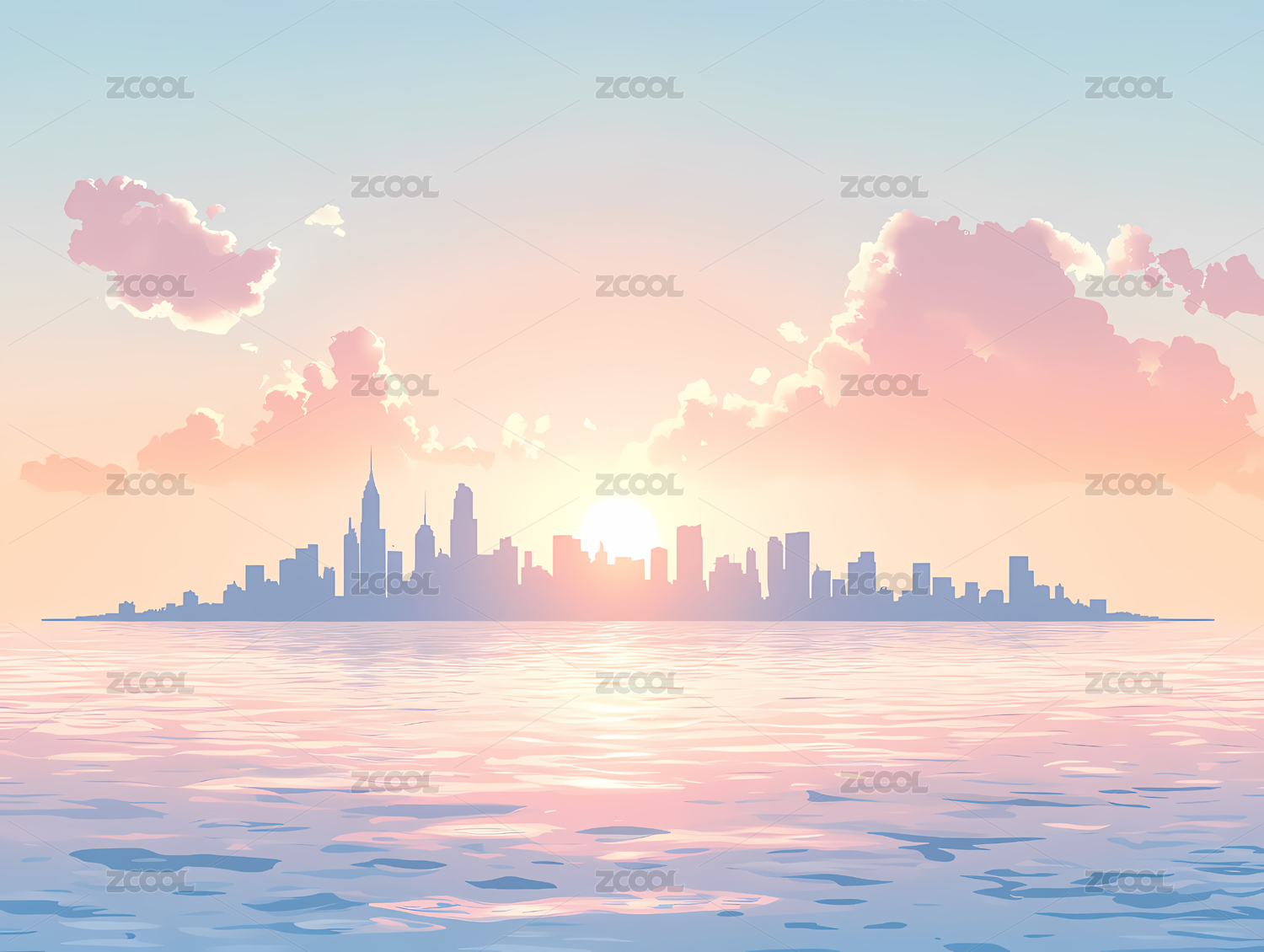 水,倒影,反射,主视觉,天空,黄昏,夕阳,光影,建筑,科技