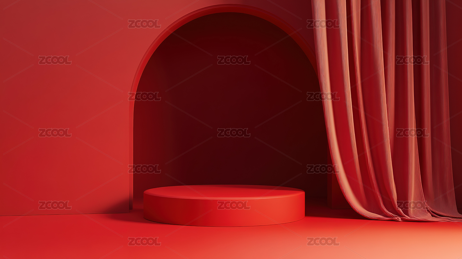 红色圆形讲台背景