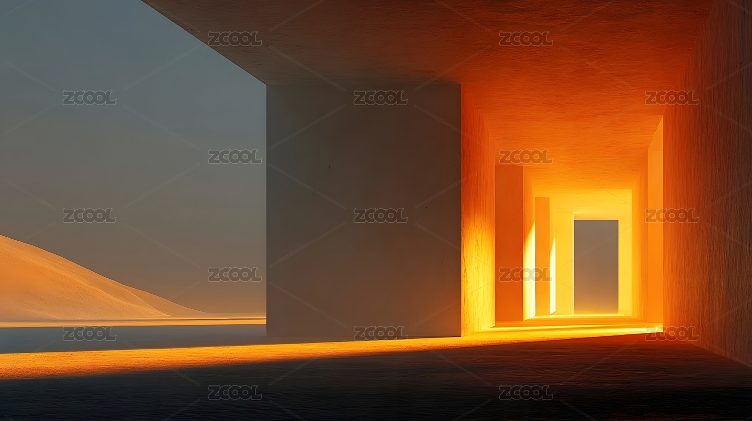 三维立体,3D,插画,空间,AI数字艺术,AIGC,氛围,光线,光,日落