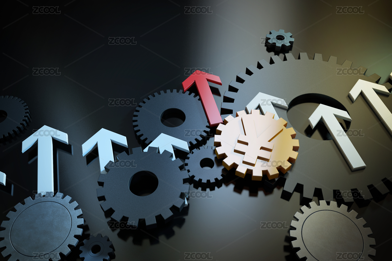 齿轮,带领,领导,带动,动力,货币,市场,经济,金融,箭头