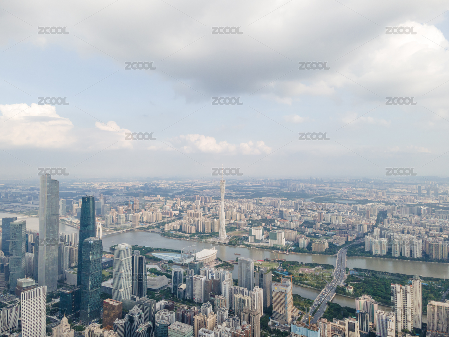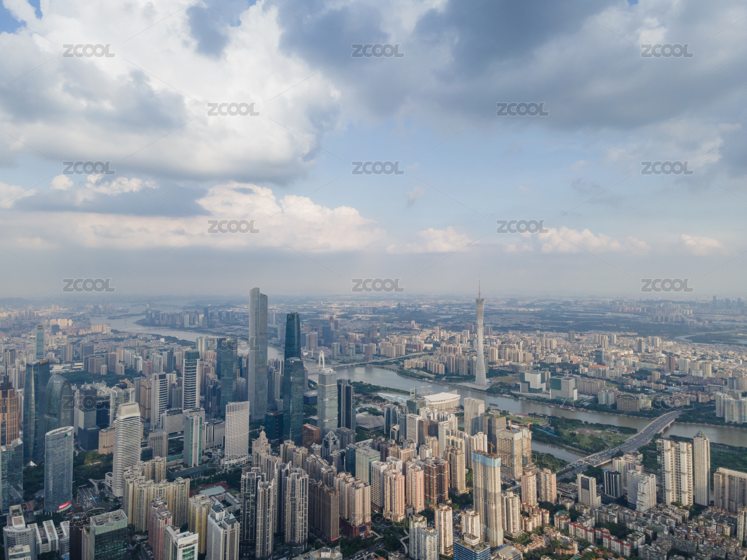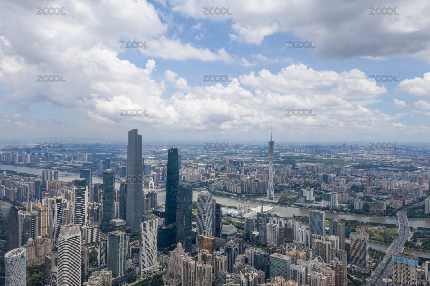 白昼晴天航拍广州琶洲CBD鸟瞰图