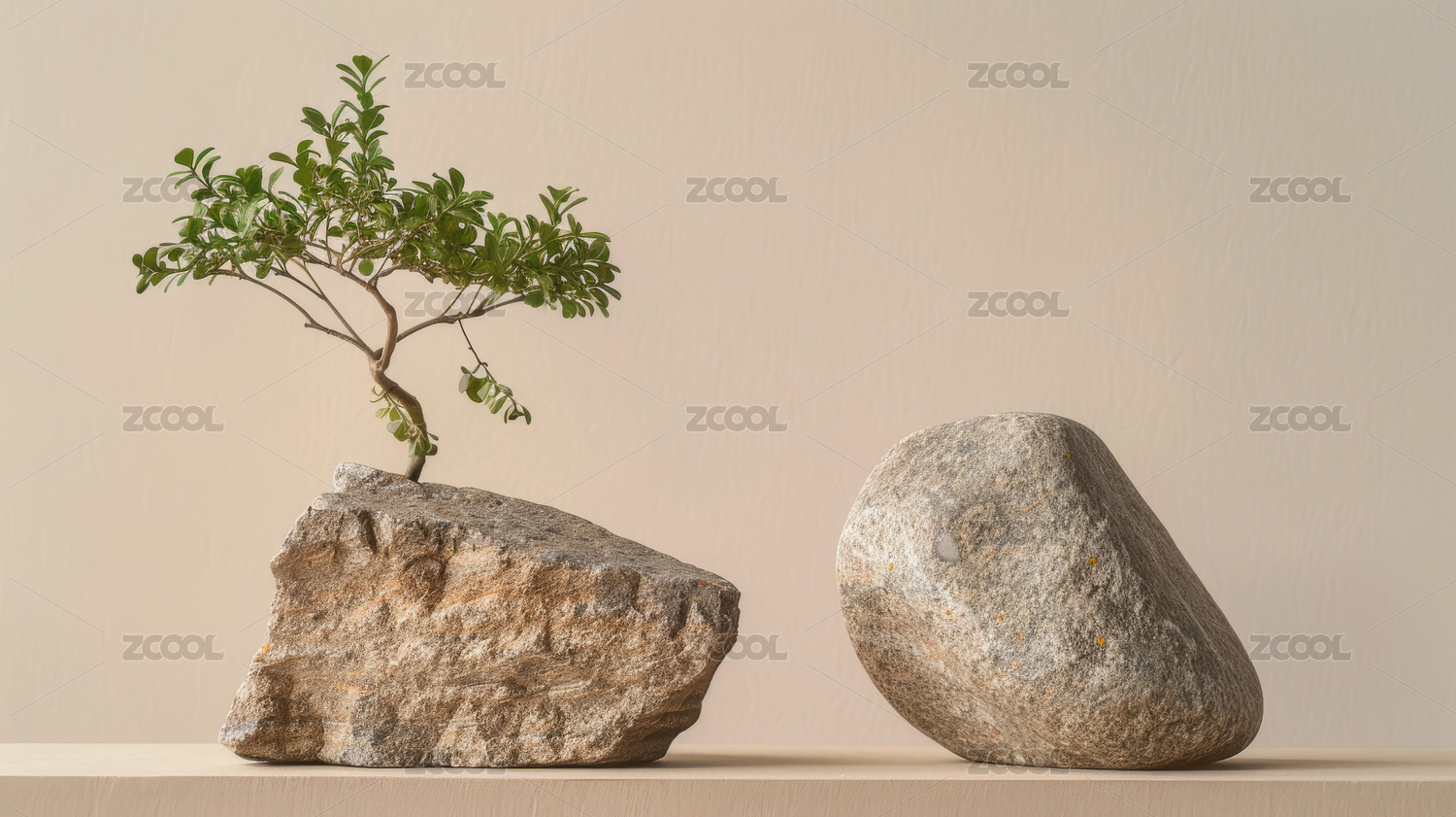 精致的盆景艺术,展示着绿意盎然的植物与岩