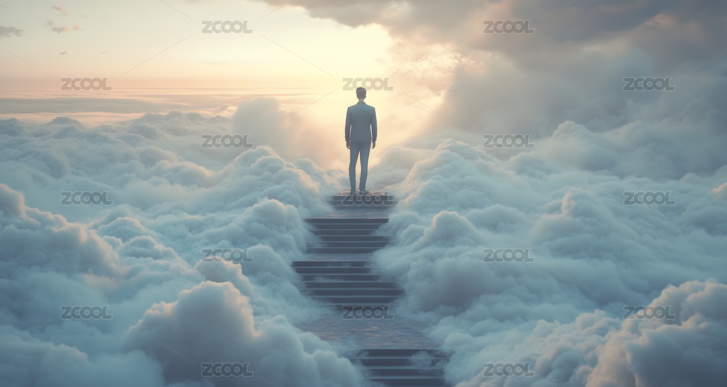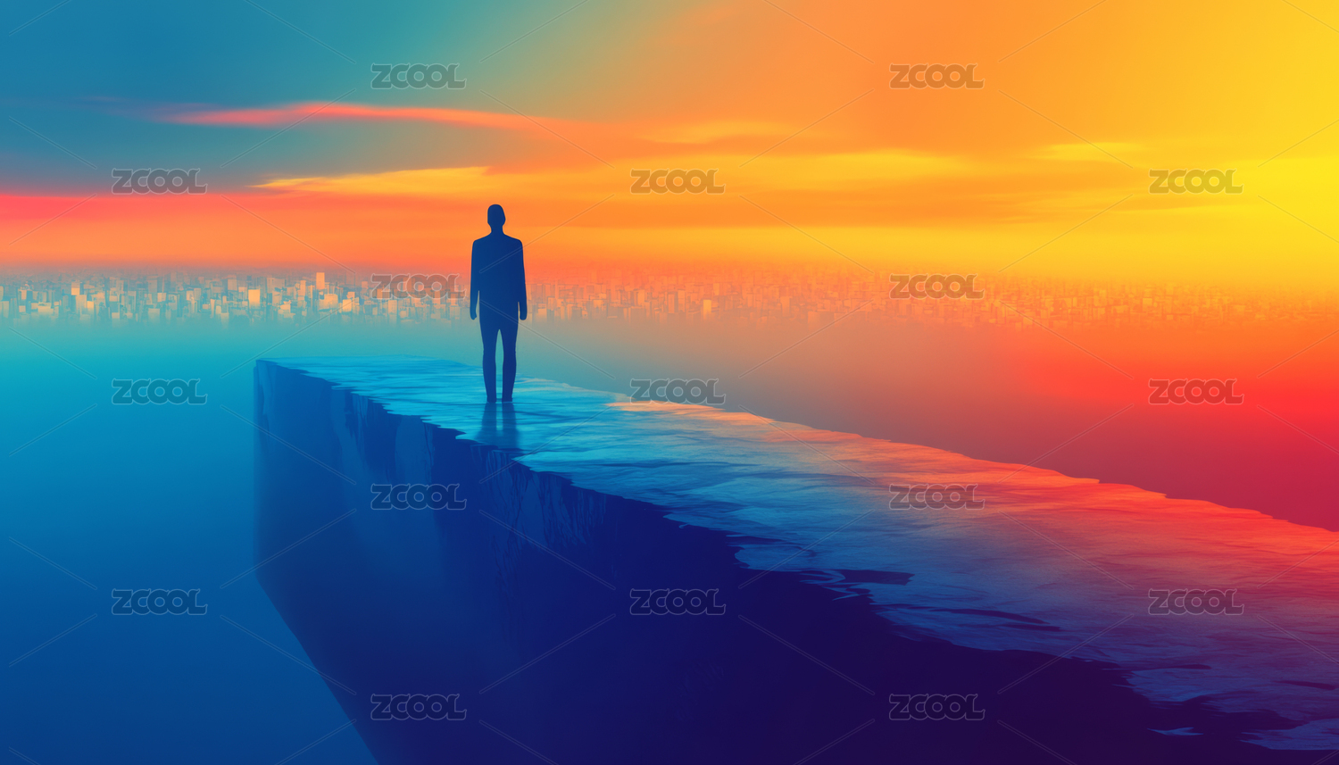 一个孤独的人站在悬崖边缘,俯瞰着远方的城