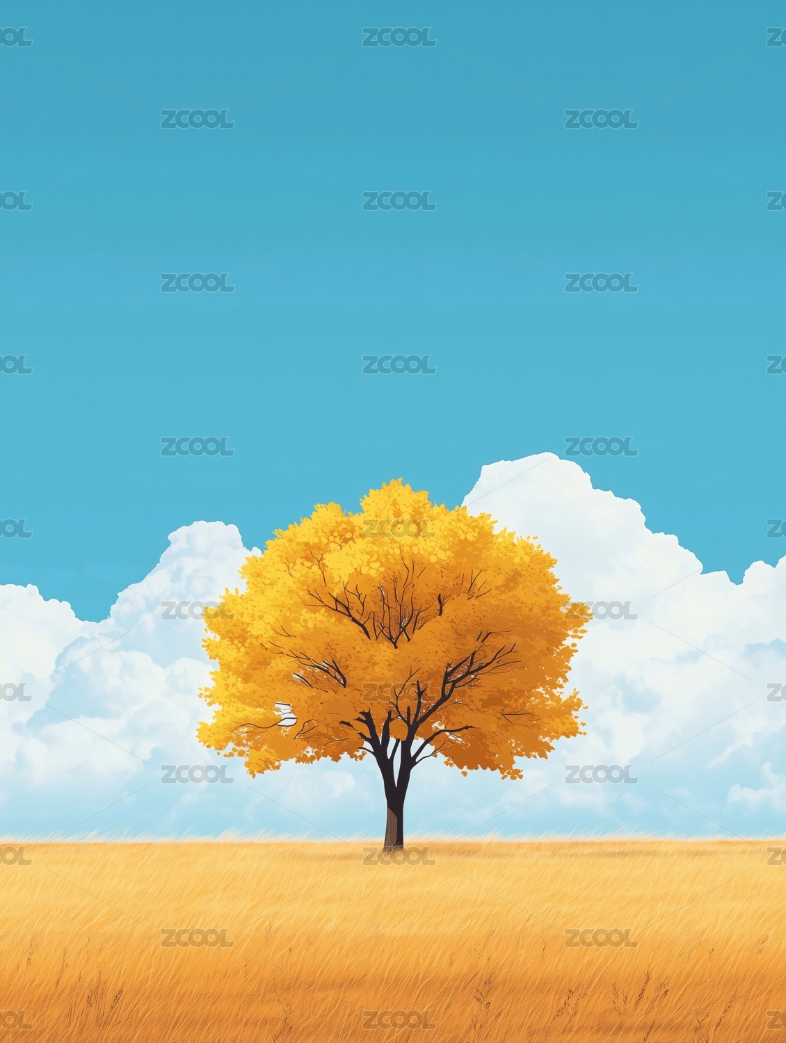 金黄旷野上的孤树