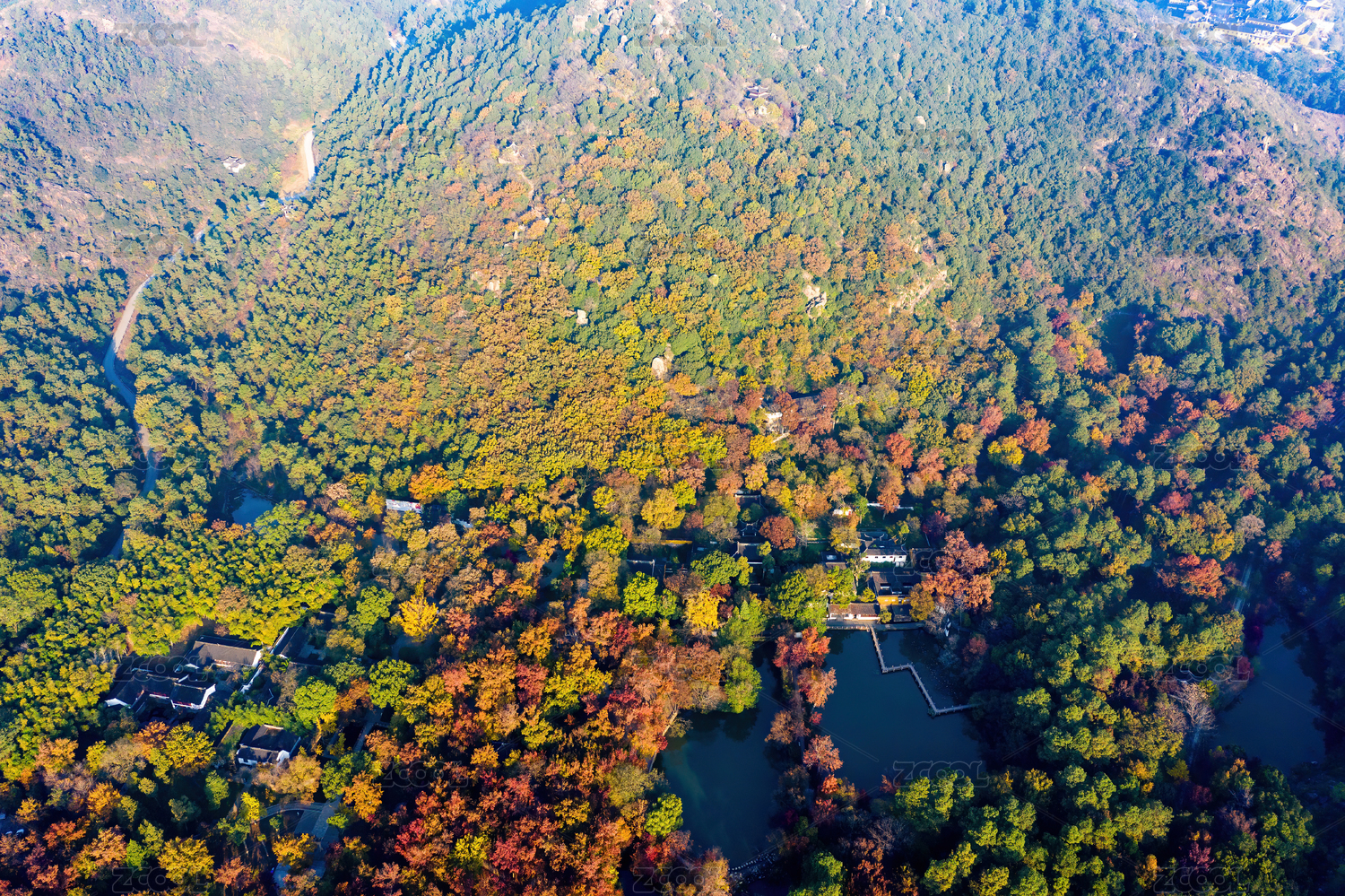 浙江省湖州市安吉灵峰寺秋色航拍