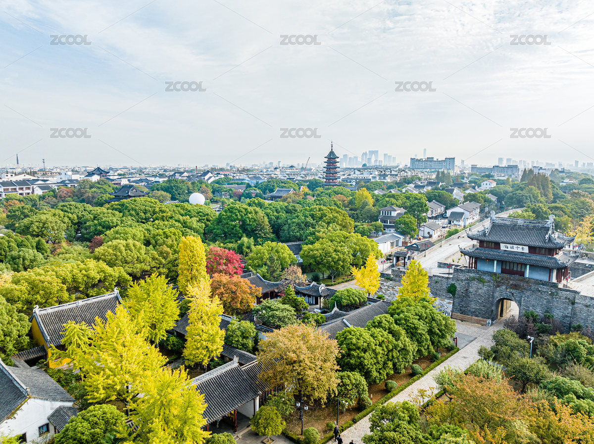 中国,江苏,苏州,盘门,著名景点,旅行,旅游,航拍视角,建筑,建筑外部