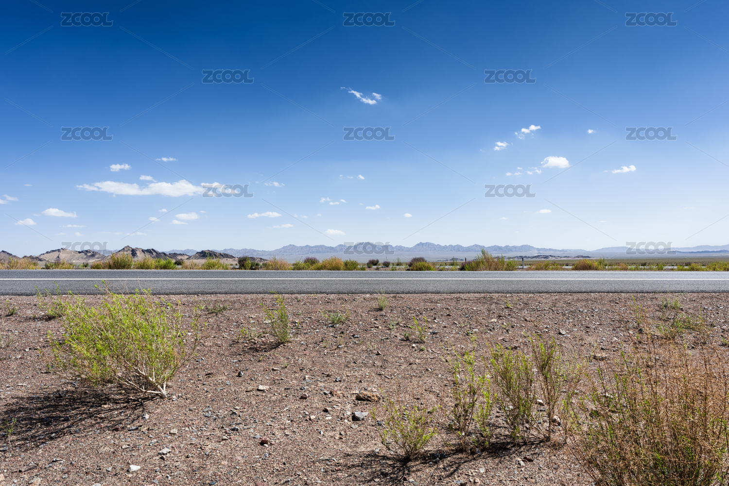 蓝天白云下的中国青海柴达木盆地荒漠中公路