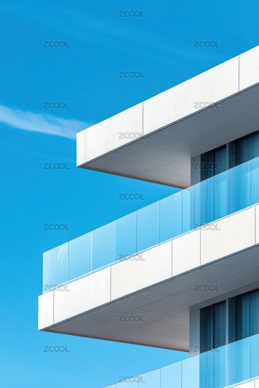 现代建筑的白色阳台与蓝天