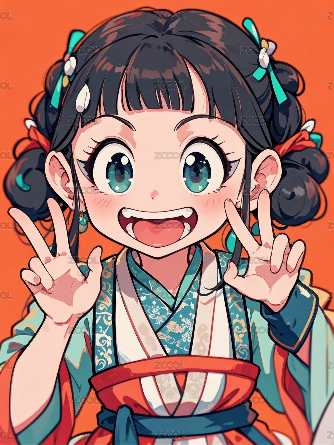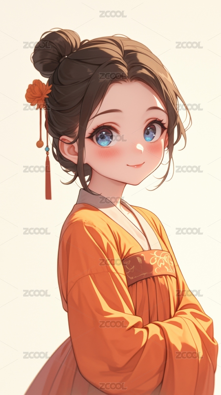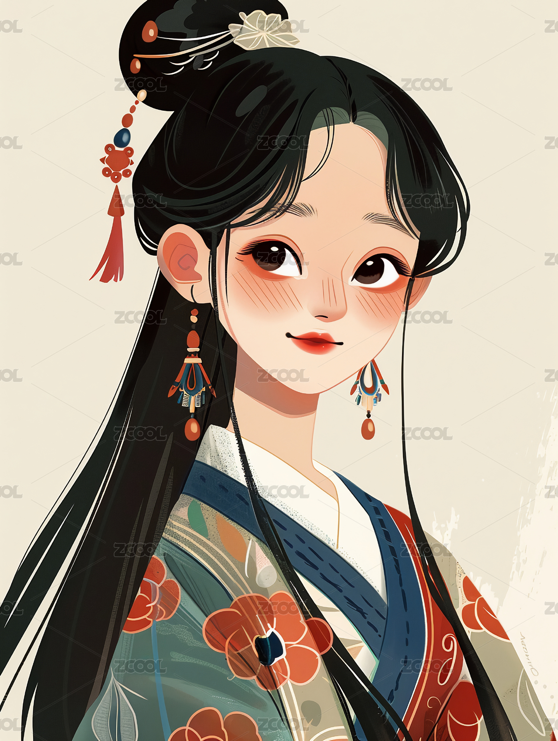 中国风,服装,艺术,插画,装饰,图案,清新,青色,女孩,可爱