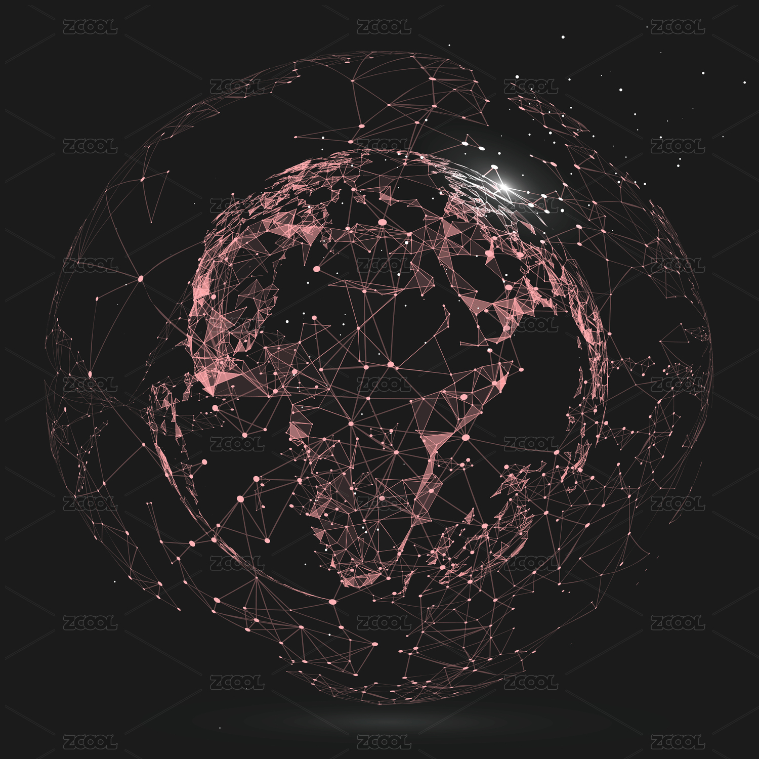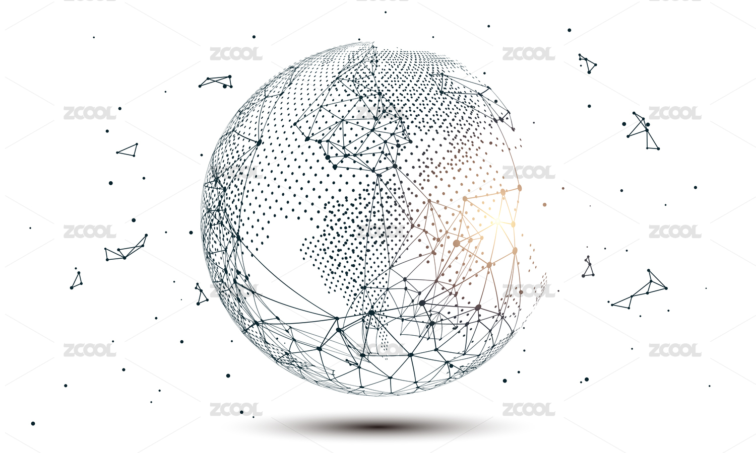 点和线连接组成的抽象地球,代表互联网、高科技,全球化、国际化