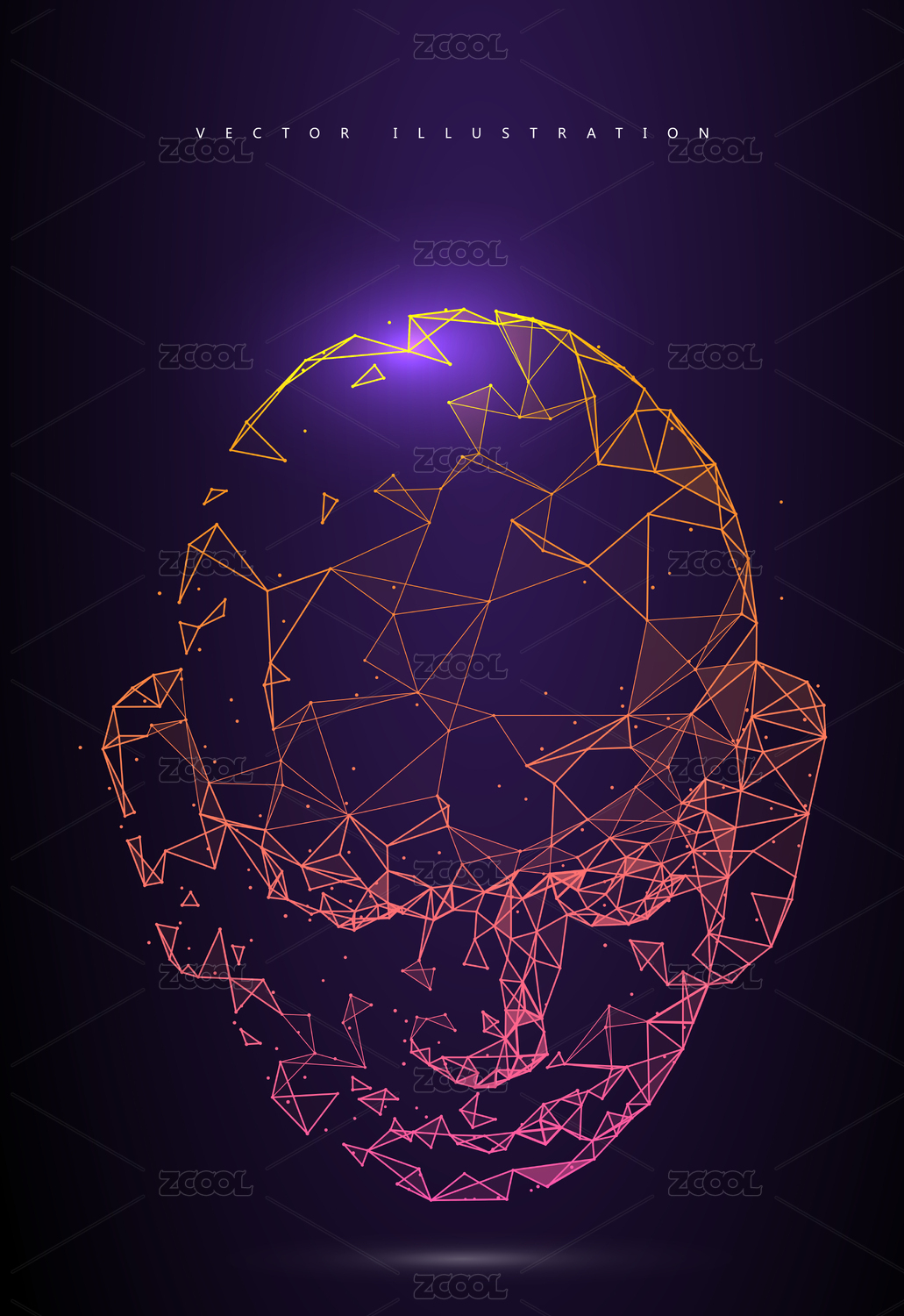 思考的人类、人工智能、创意思想者、点线面组成的人脸、素描俯视。