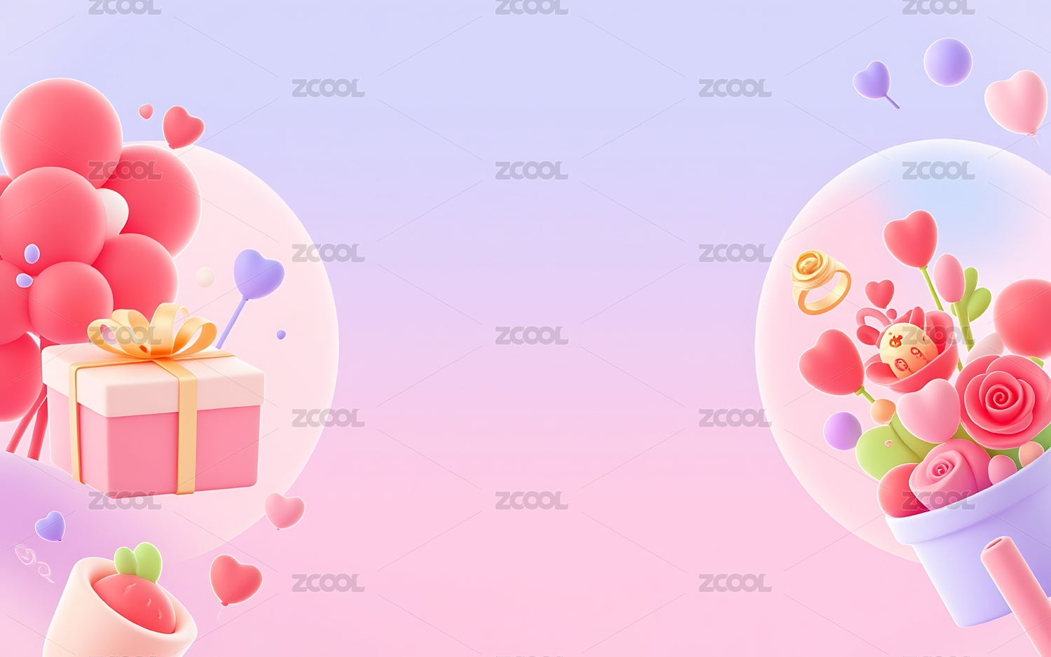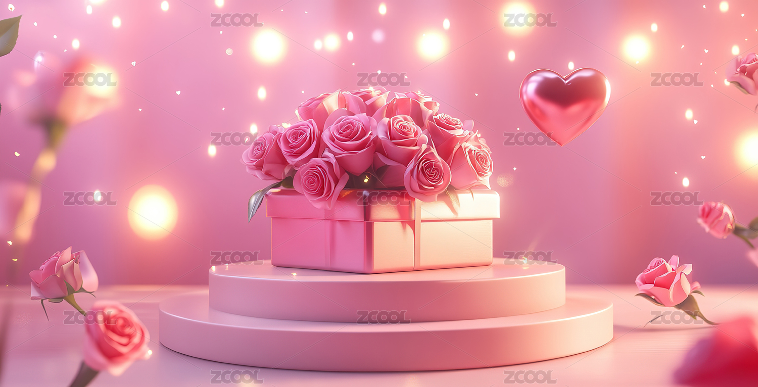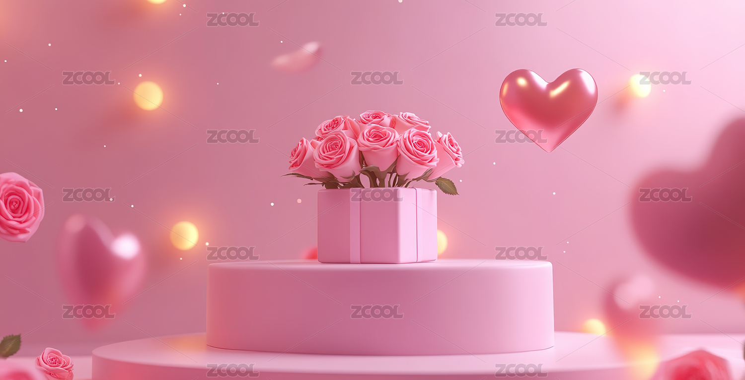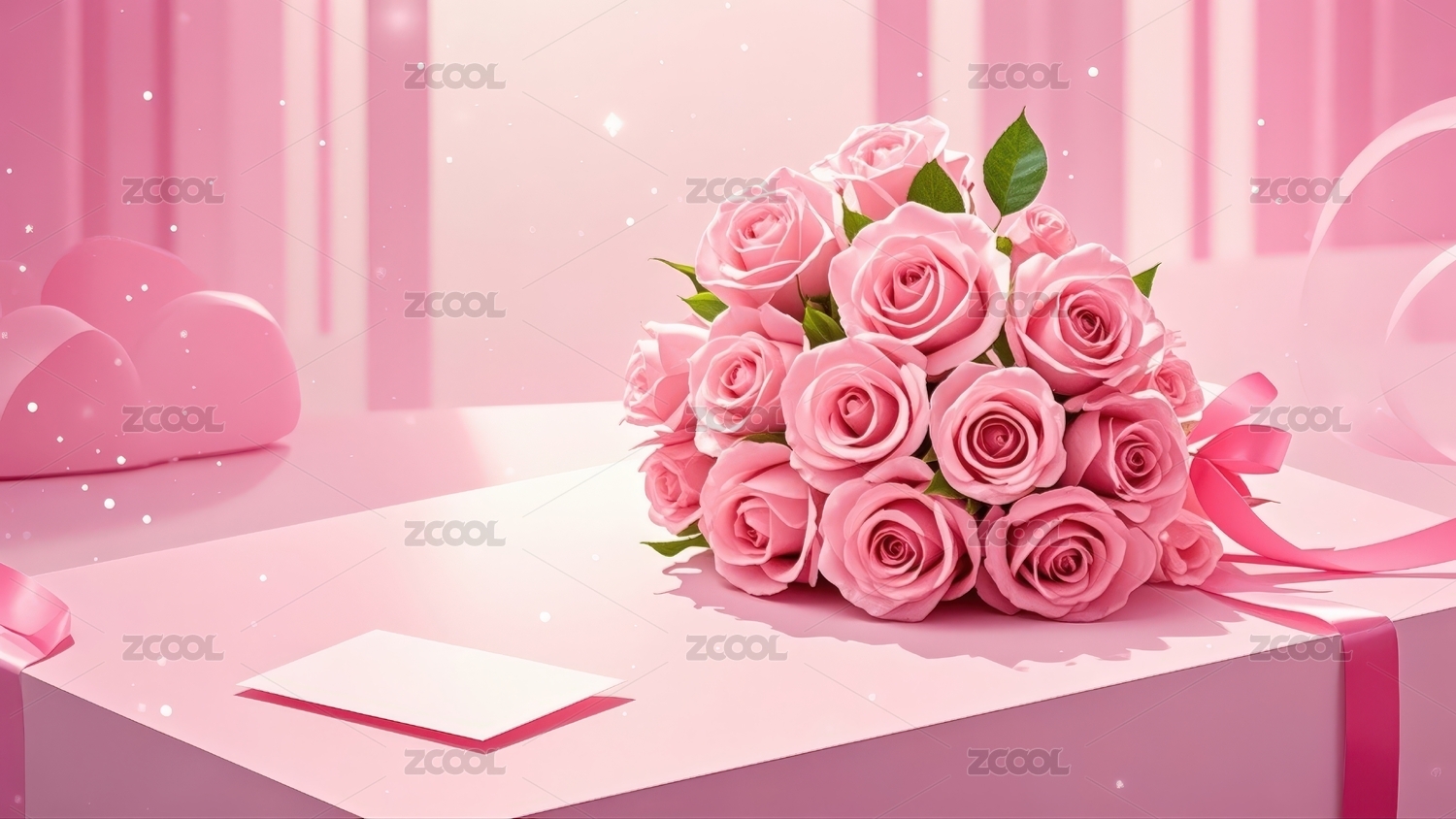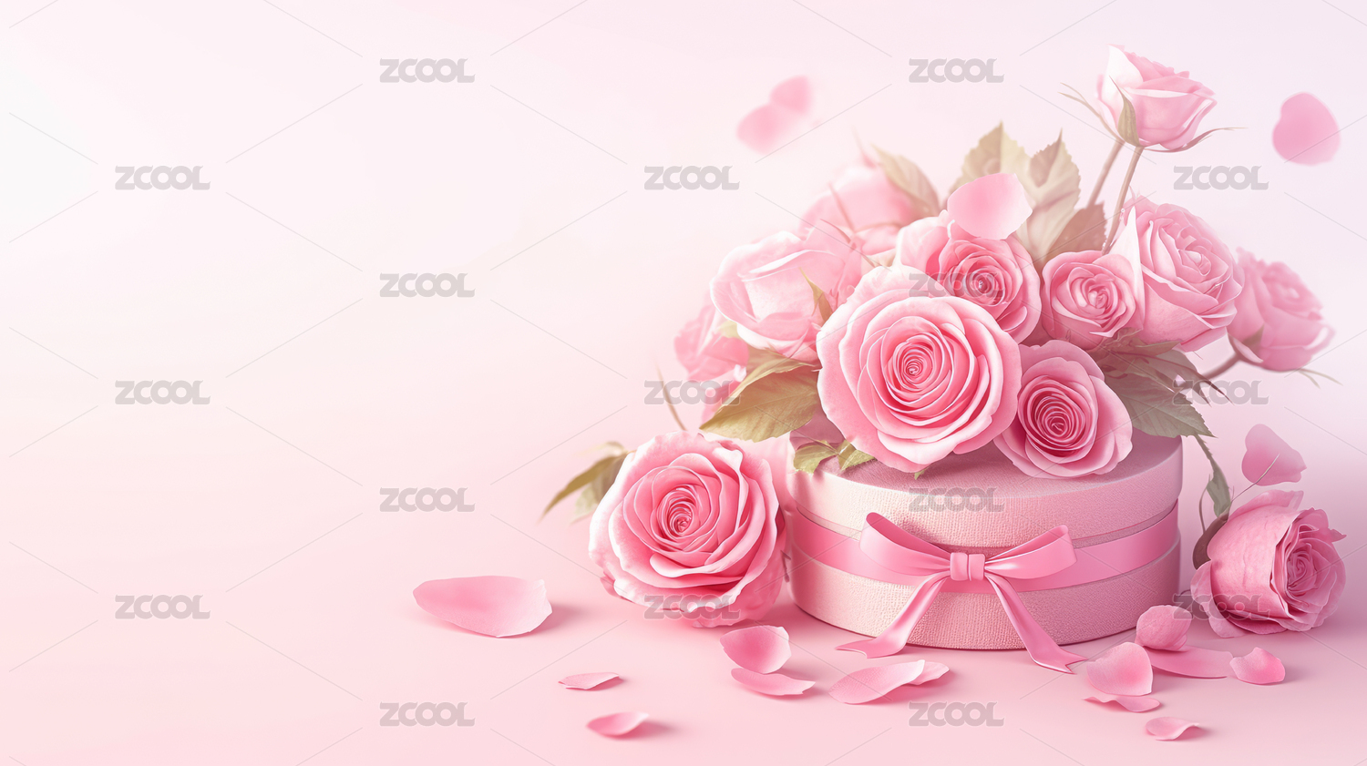 粉色玫瑰花礼盒唯美清新简约极简背景