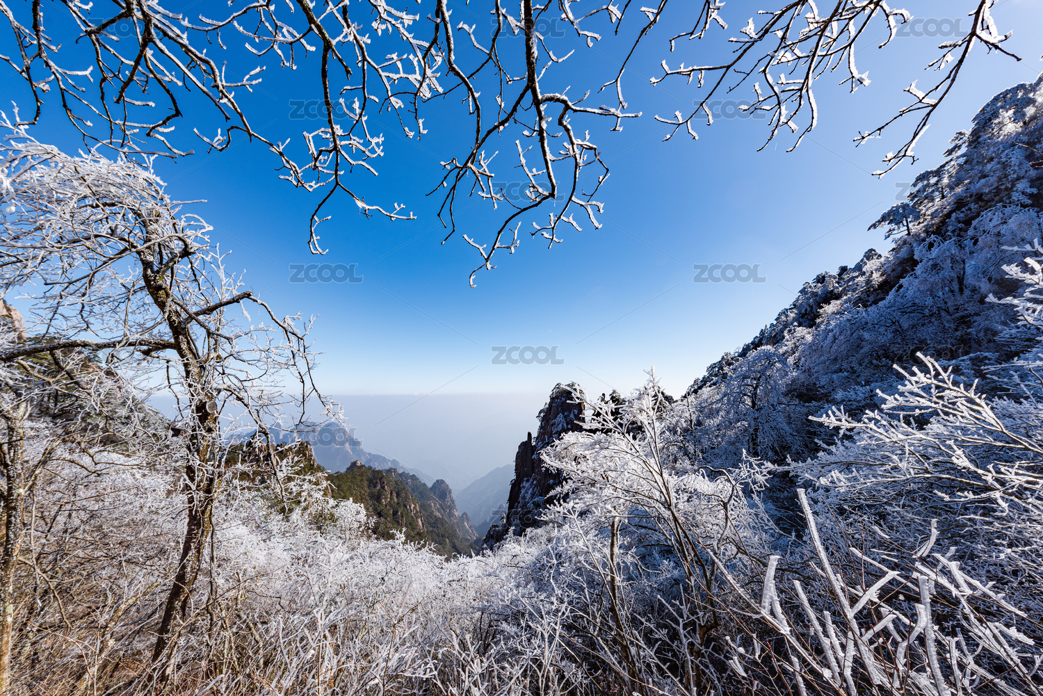 安徽省黄山市黄山风景区冬季雾凇雪景