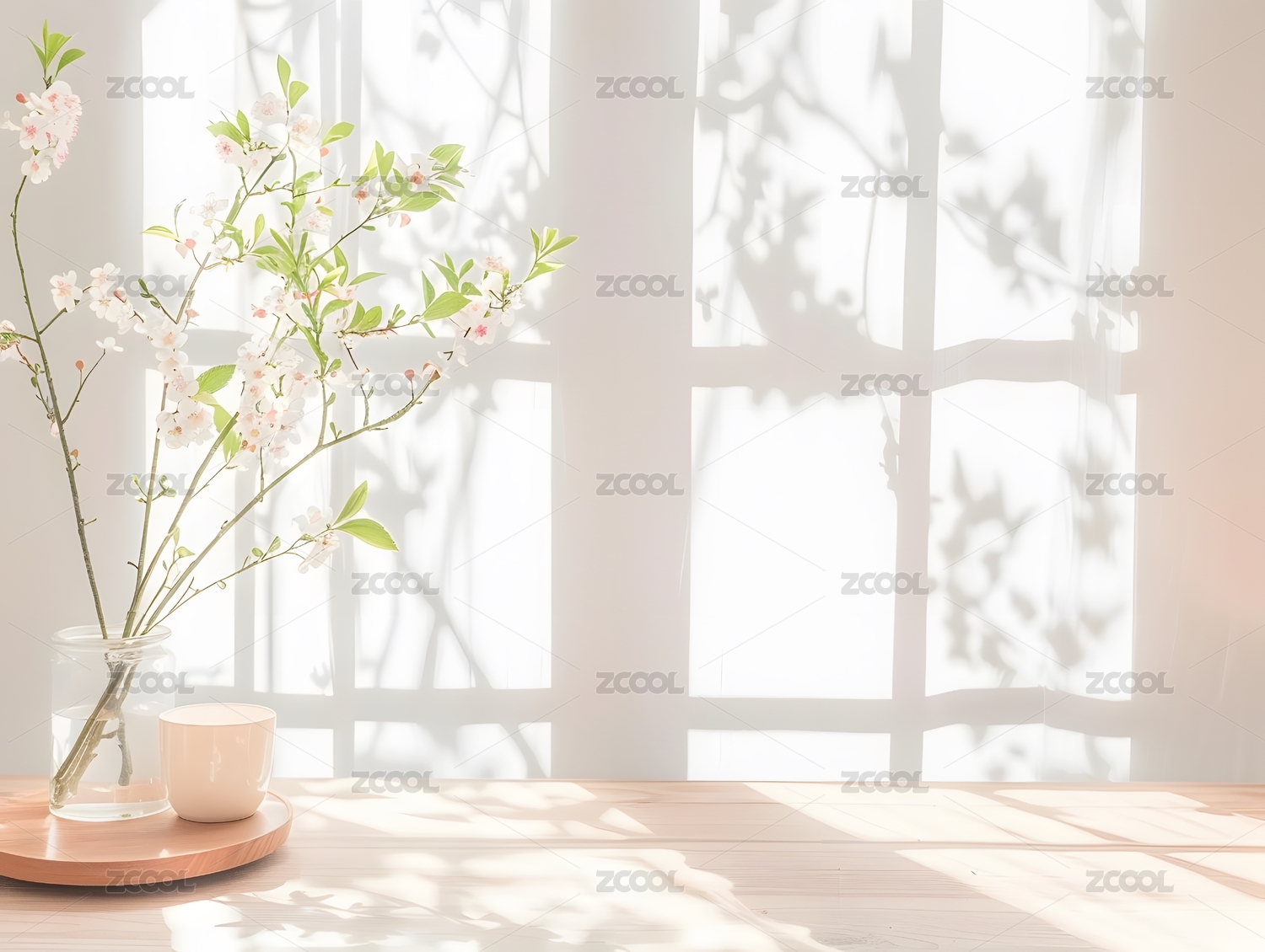 宁静,花,春天,阳光,室内,桌子,树枝,窗户,木桌,温暖