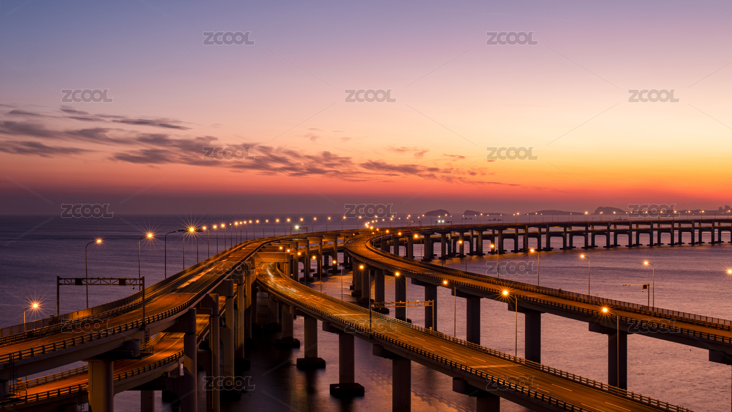 大连跨海大桥黄昏,大连,中国的标志性建筑。