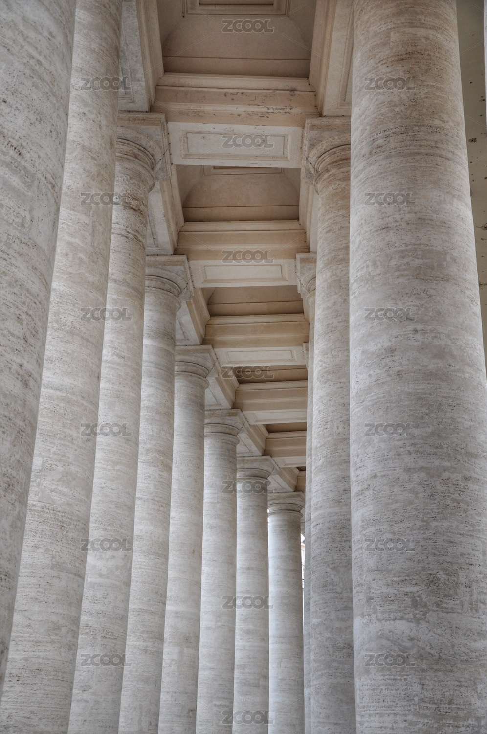 梵蒂冈圣彼得广场大理石柱走廊光影特写