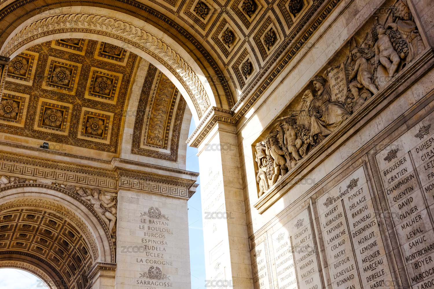 古典欧式教堂建筑穹顶上精美的雕刻和壁画