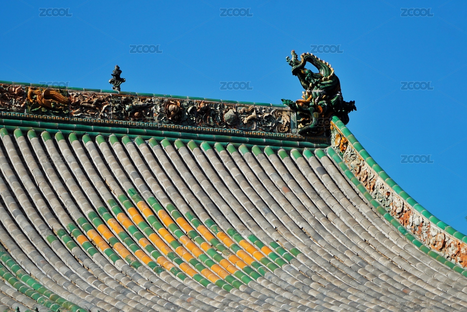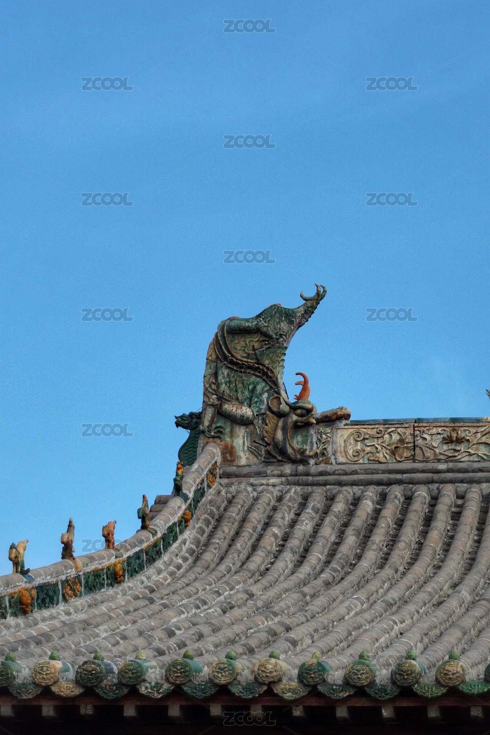 山西省朔州崇福寺弥陀殿古建筑屋顶琉璃脊饰