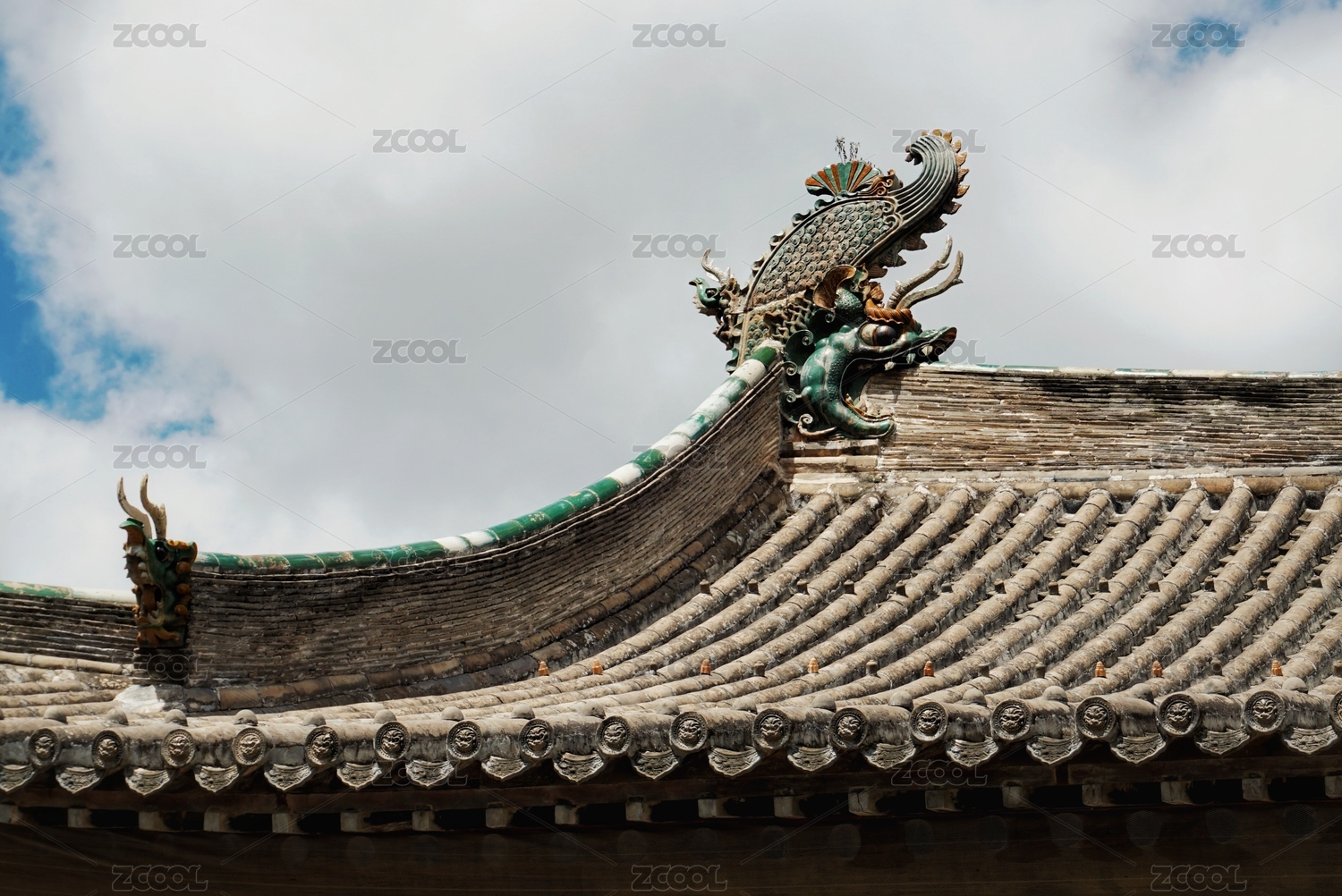 古建飞檐上的龙首