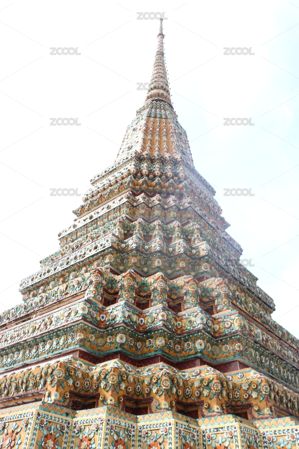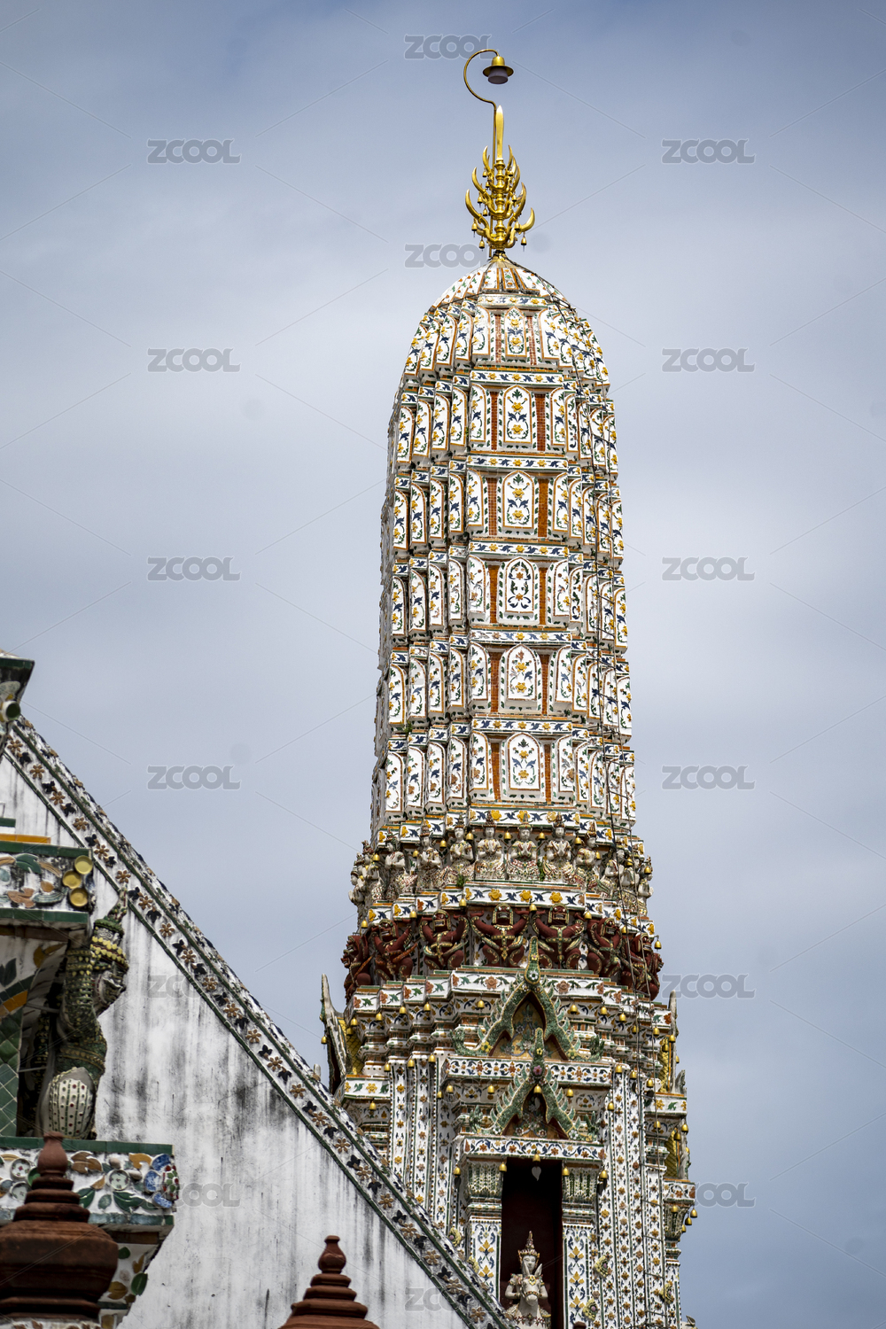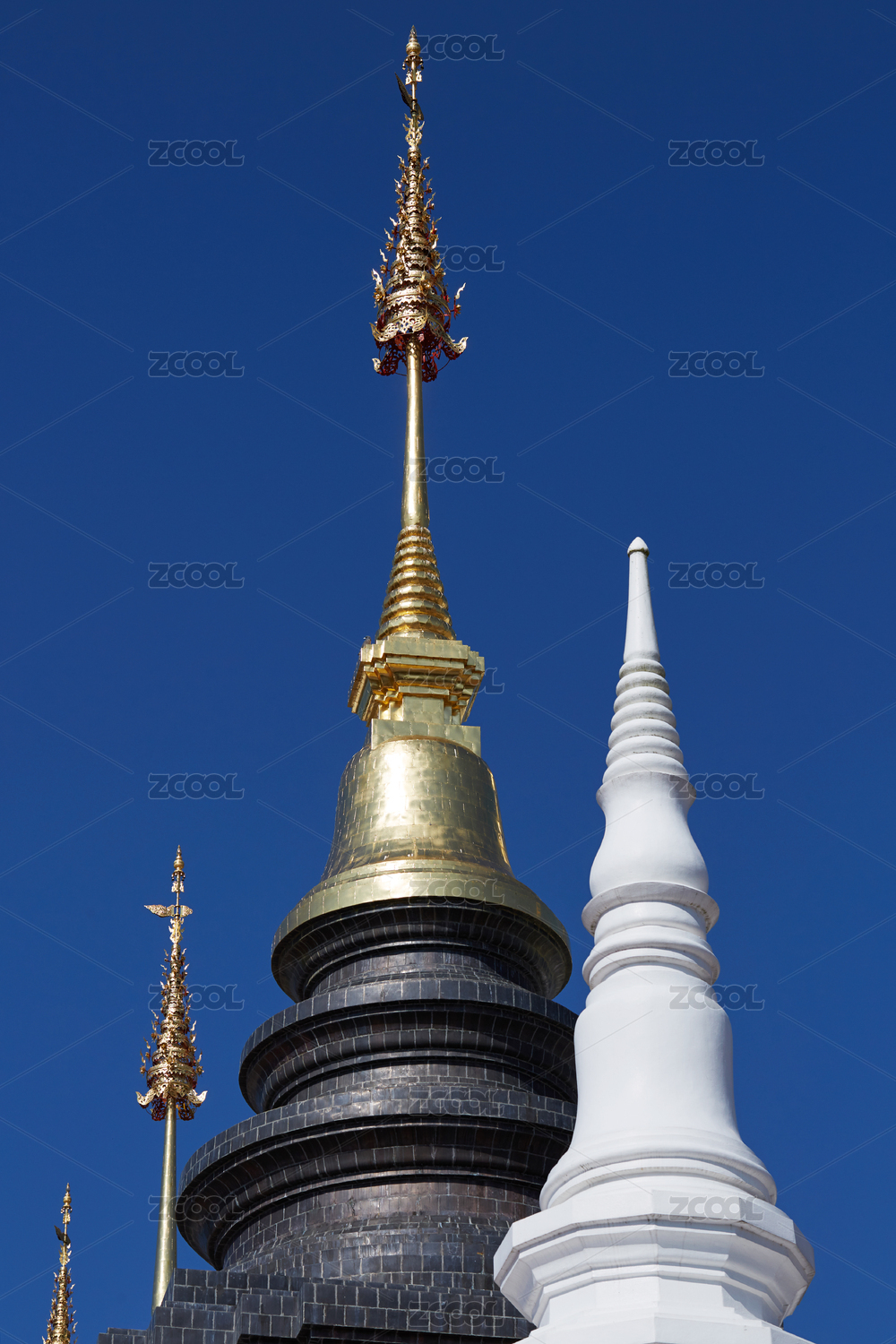 神圣佛教寺庙大门的宁静景象与金色尖顶