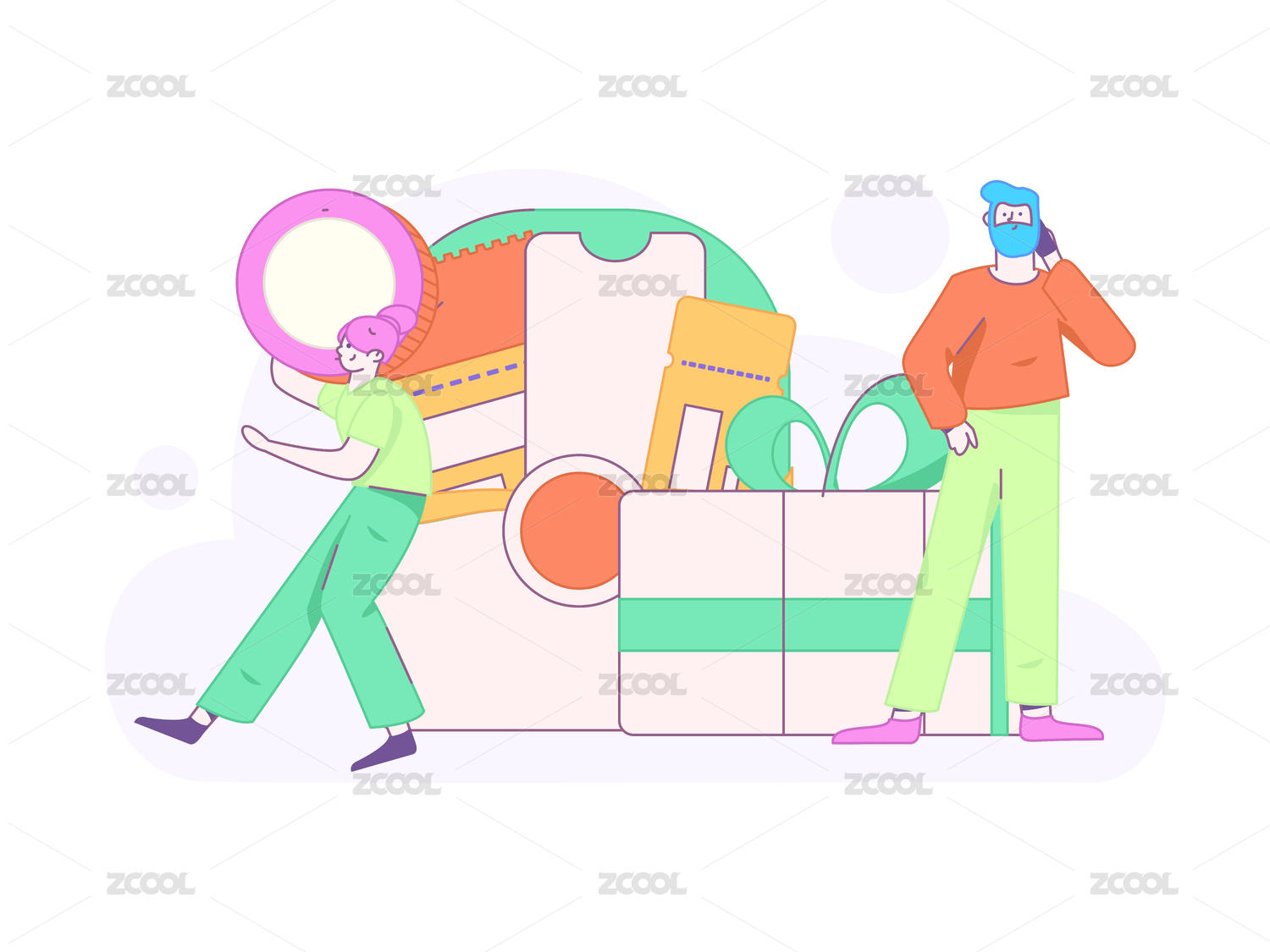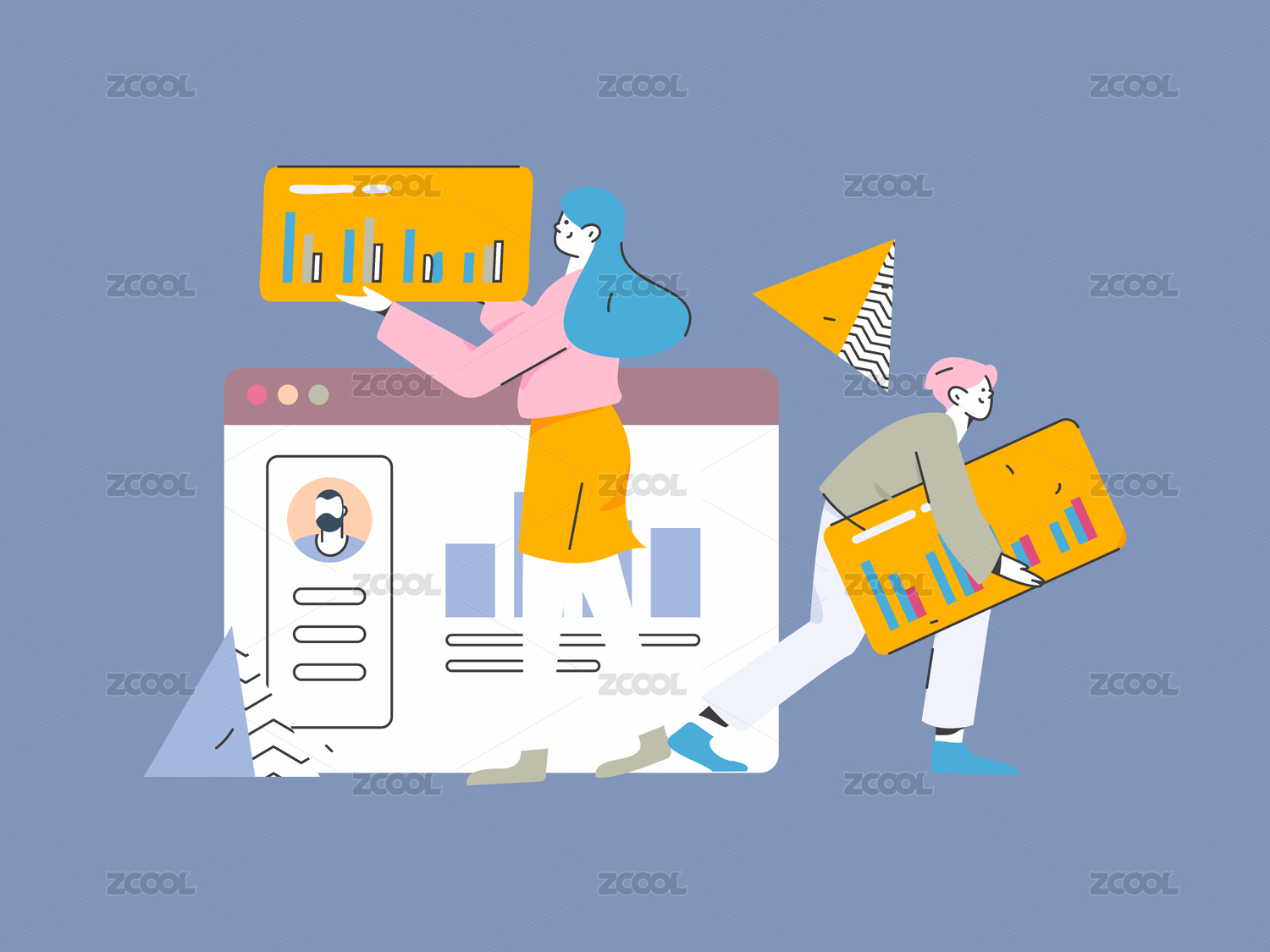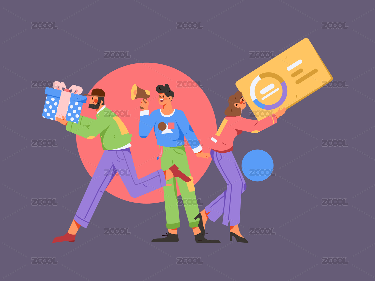 商务人物运营工作场景扁平矢量插画