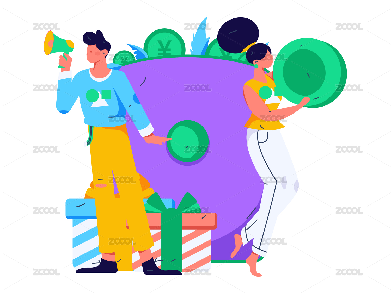 使用红包拉新促活扁平矢量人物概念插画
