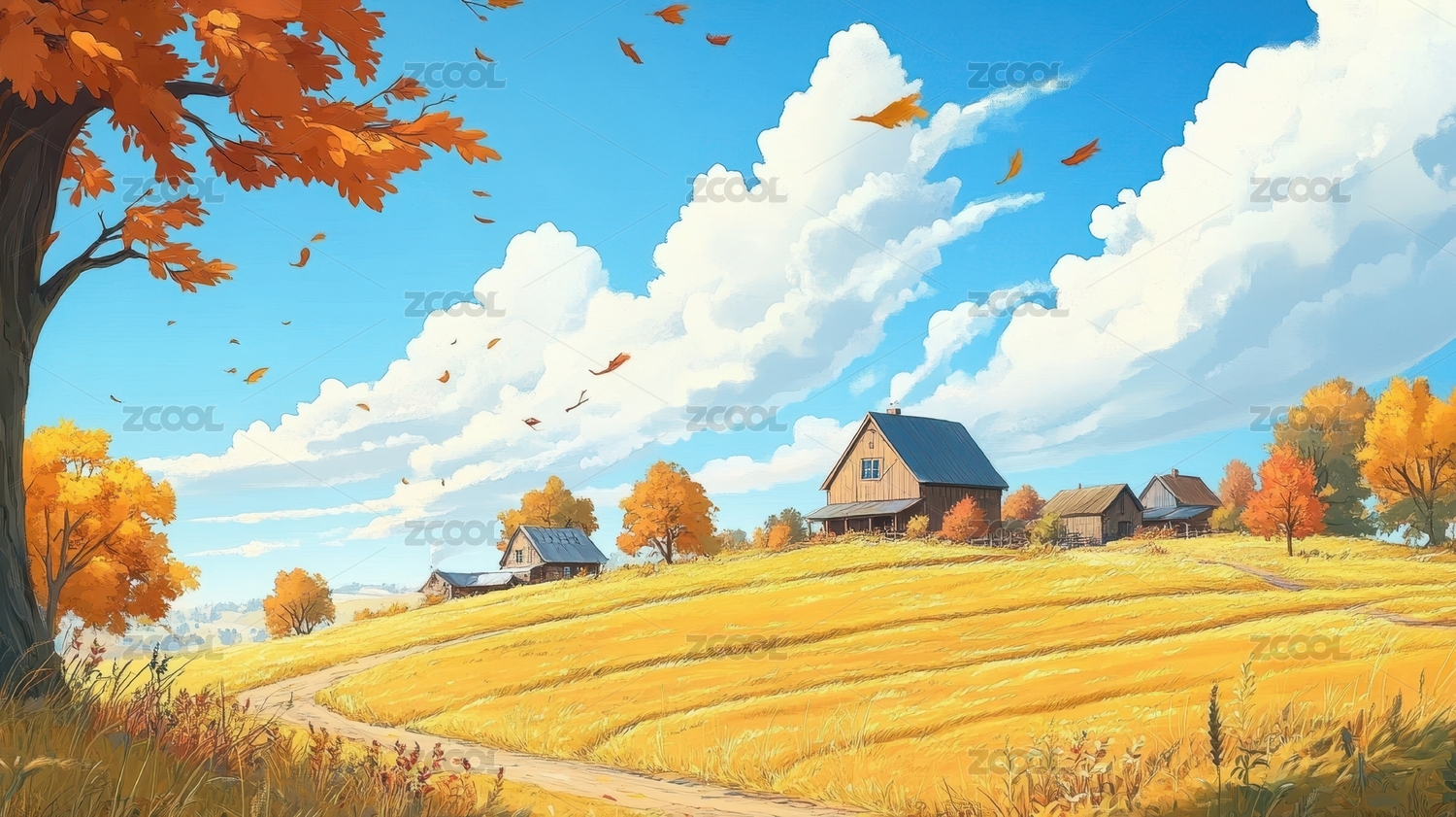 秋天秋季立秋秋分自然户外风景卡通漫画插画