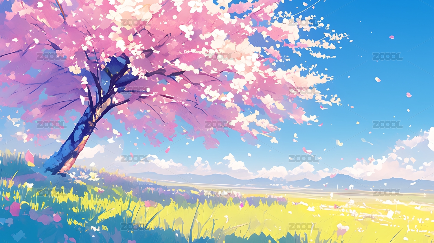 AIGCFG02,春天,樱花,风景,卡通,插画