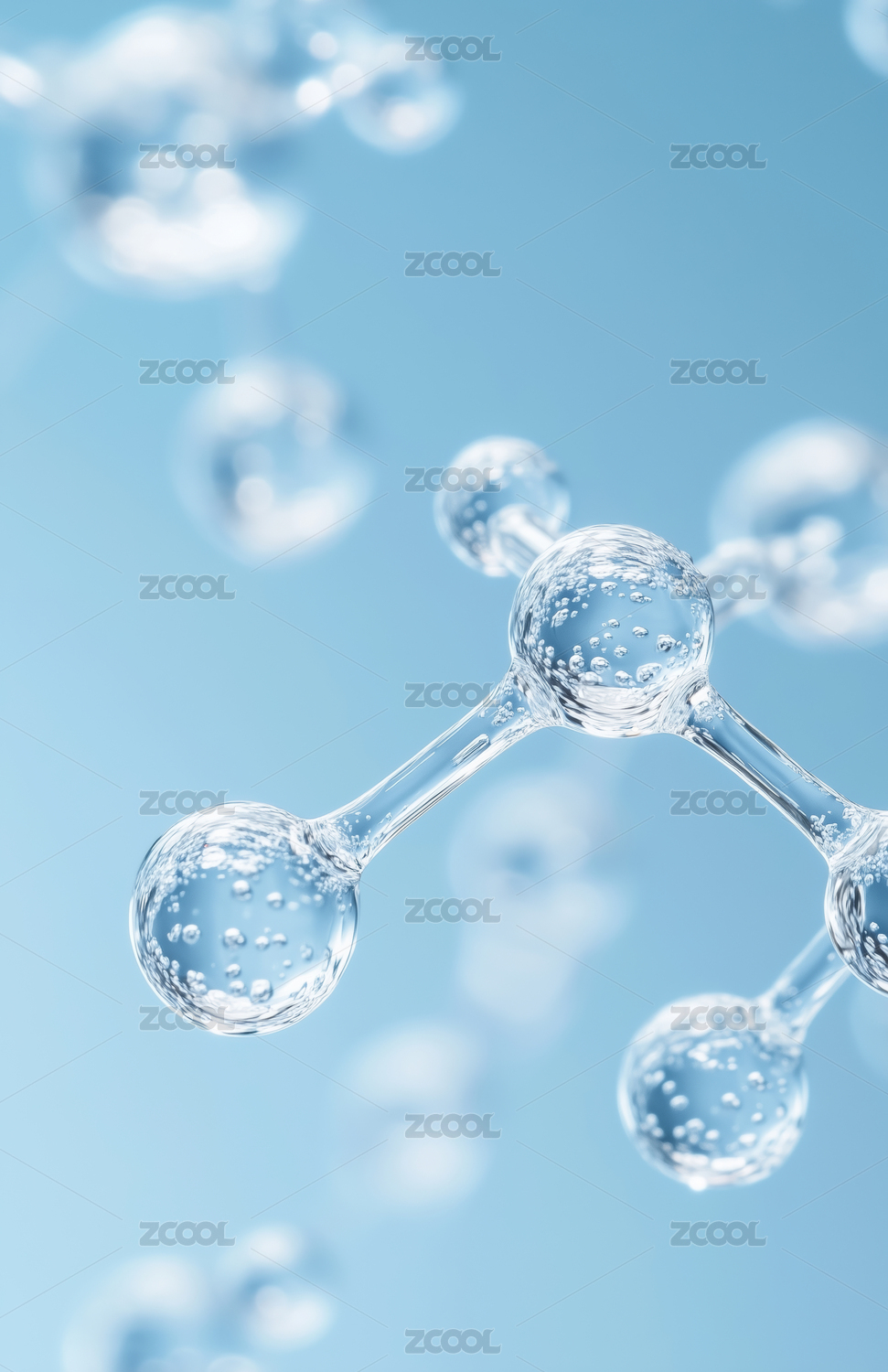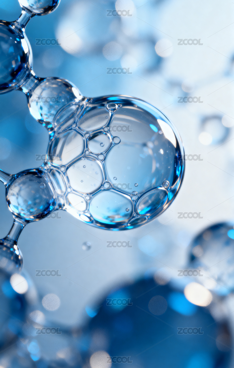 蓝色水分子三维立体结构图