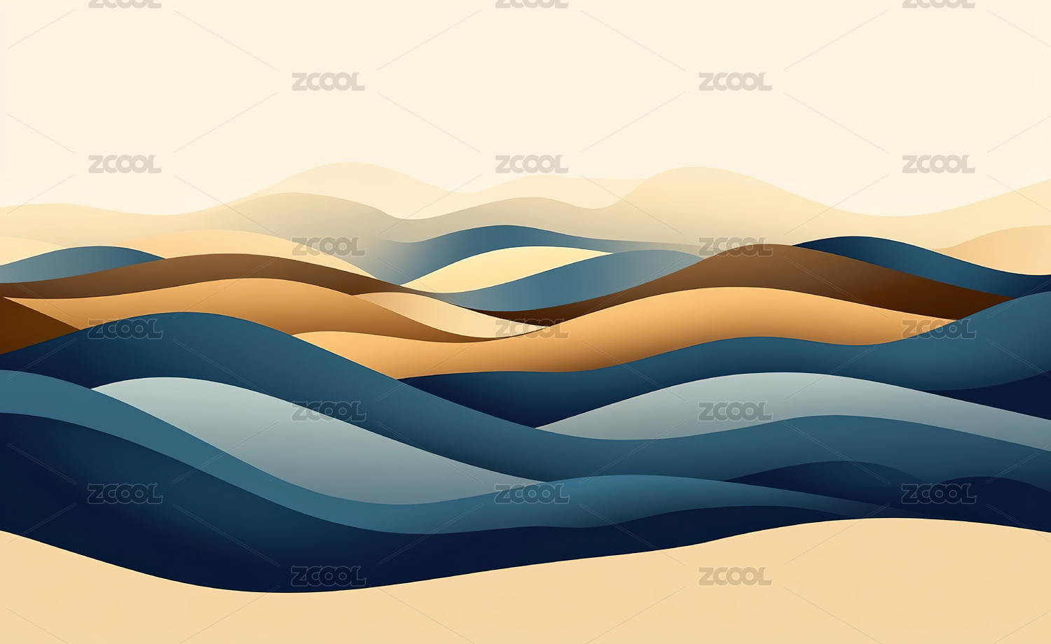 蓝色黄色抽象山脉景观