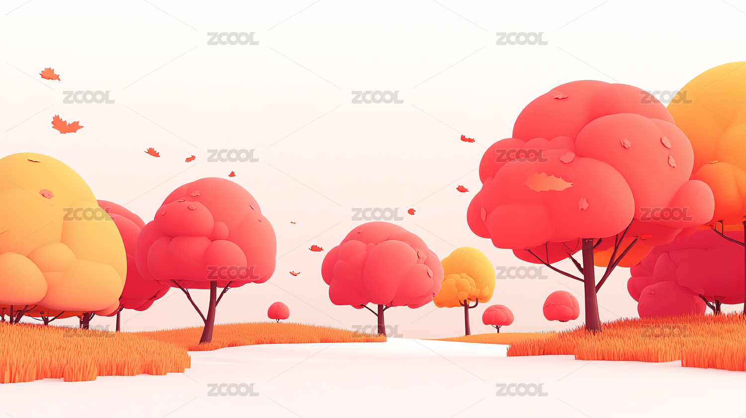 秋分节气户外房屋落叶处暑时节秋日场景插画