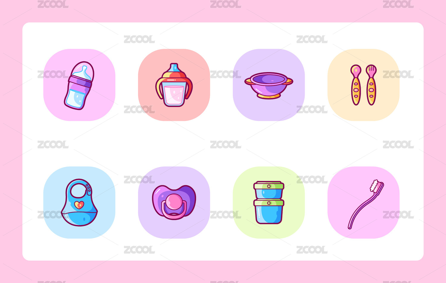 一些奶爸奶妈带娃日常母婴用品矢量图标设计