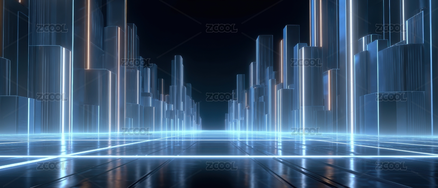 科技蓝色梦幻现代城市高层建筑3D立体插画
