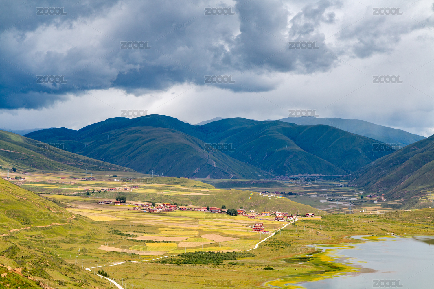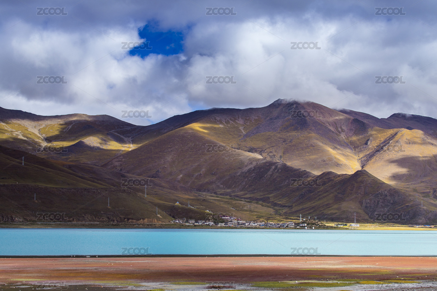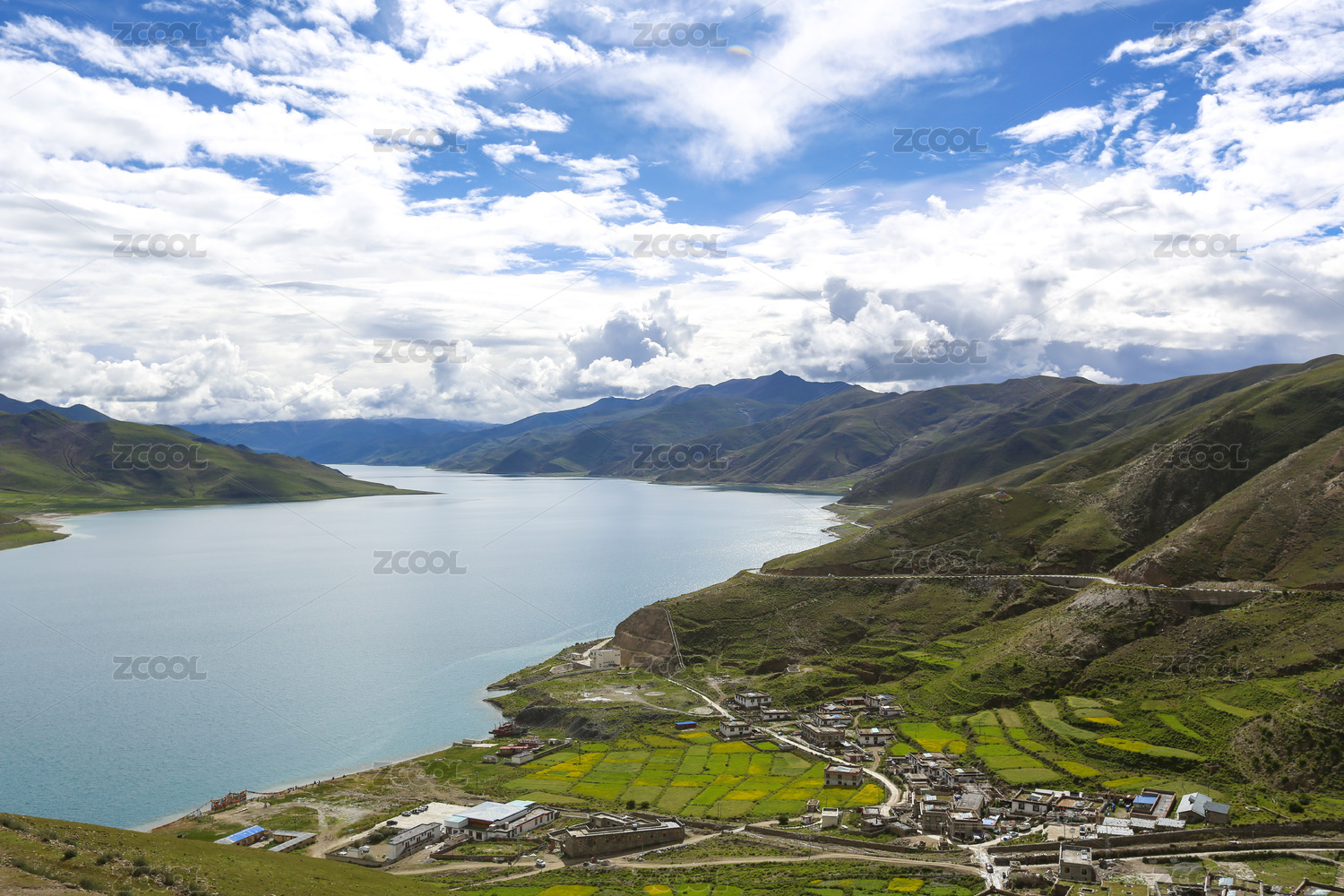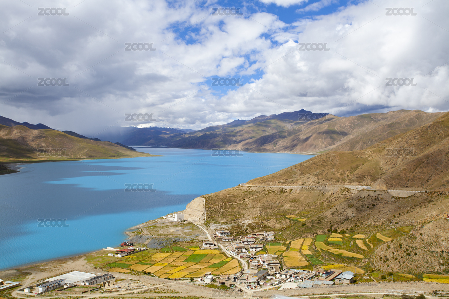 中国圣湖羊卓雍错与旁边的村庄