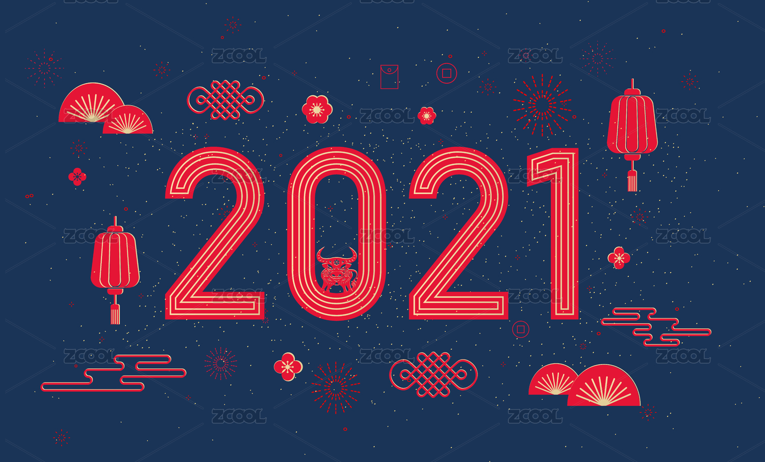 春节,数字,新春,2021,牛年,HEZODIAC2021,灯笼,锦鲤,鲤鱼,梅花