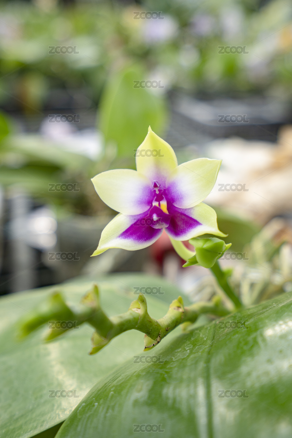 大棚内单株青紫色蝴蝶兰花新品种特写