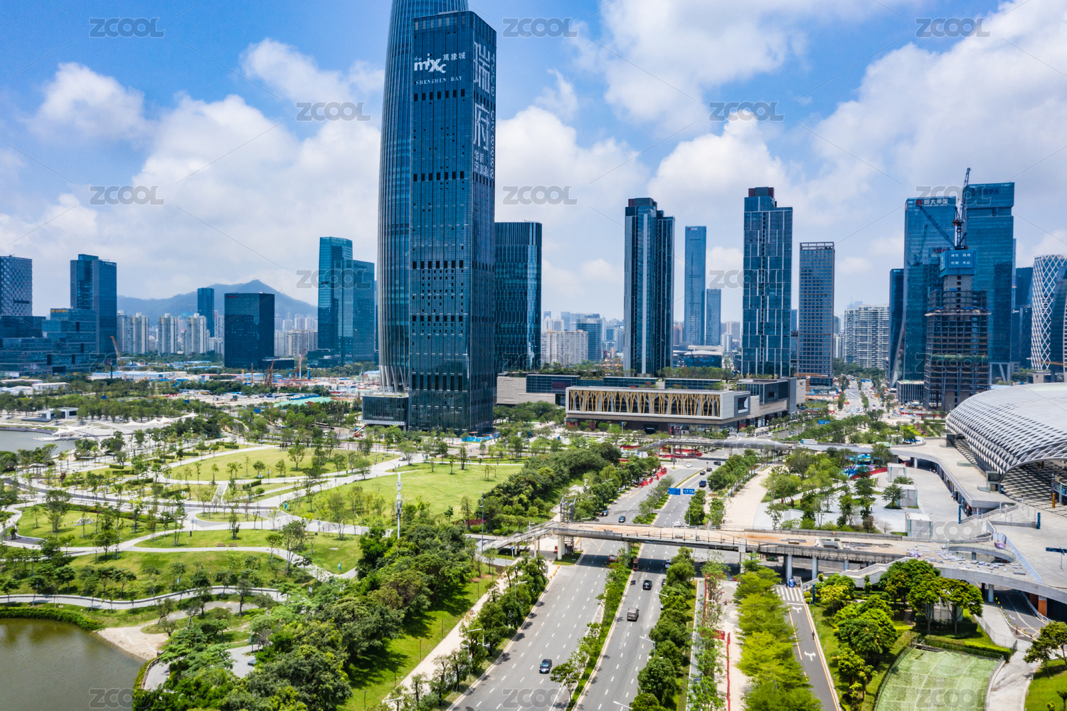 航拍,交通,深圳,南山区,人才公园,深圳湾,深圳市,市区,天际线,亚洲