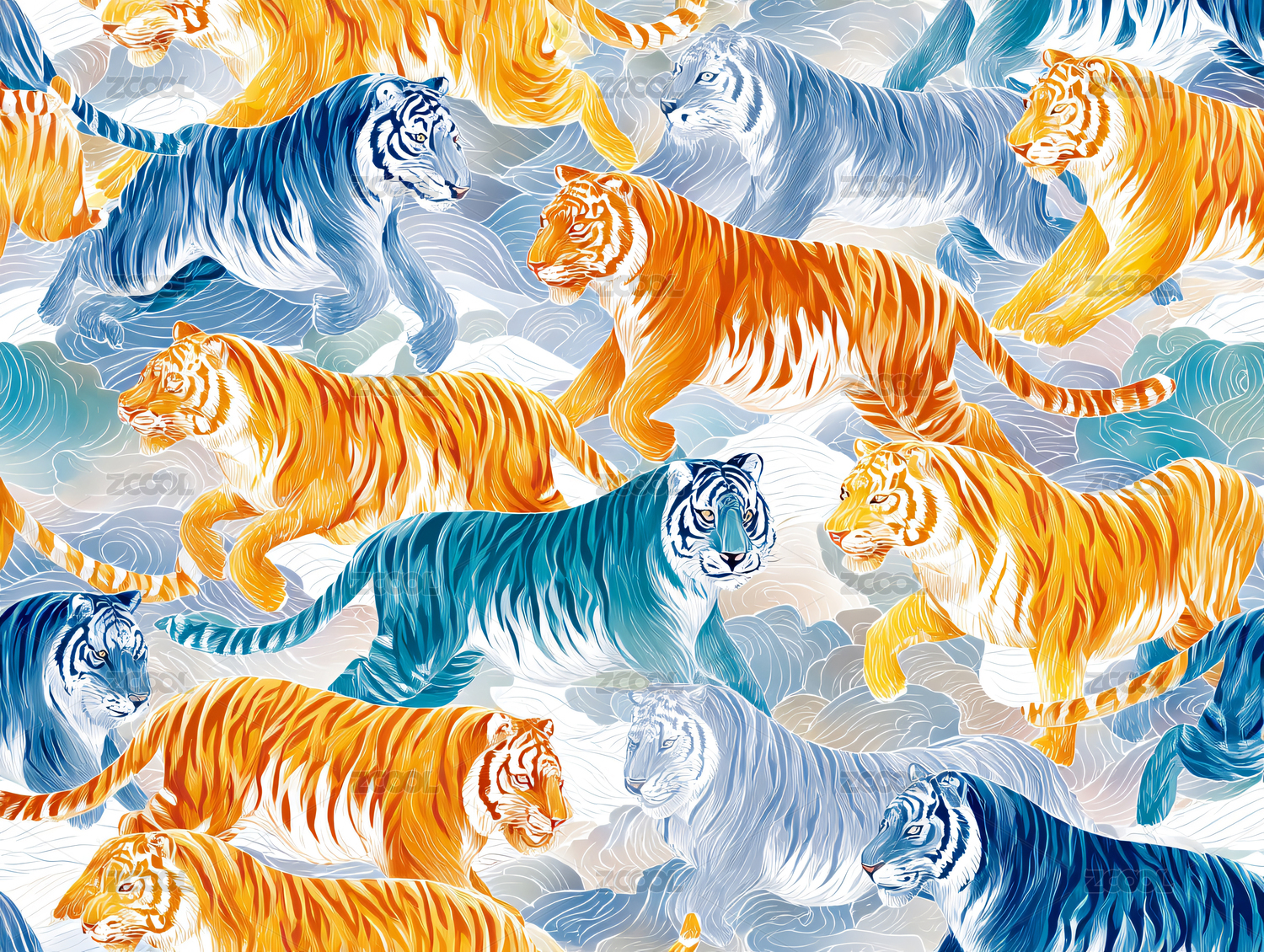白虎,老虎,动物,无缝,平铺,四方连续纹样,装饰,背景,图案,纹理