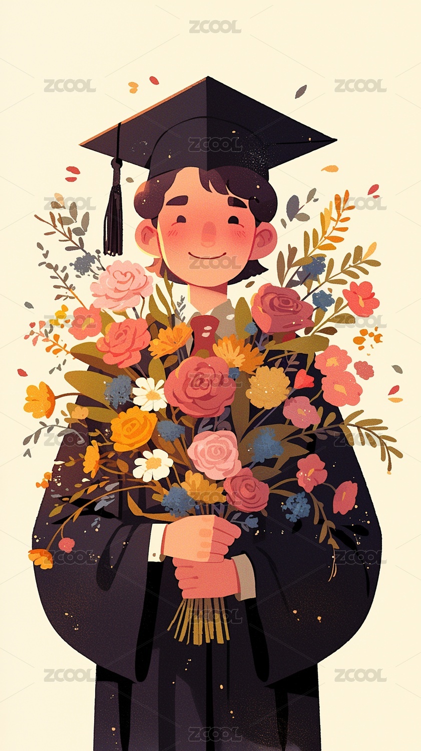 抱着花束的毕业生
