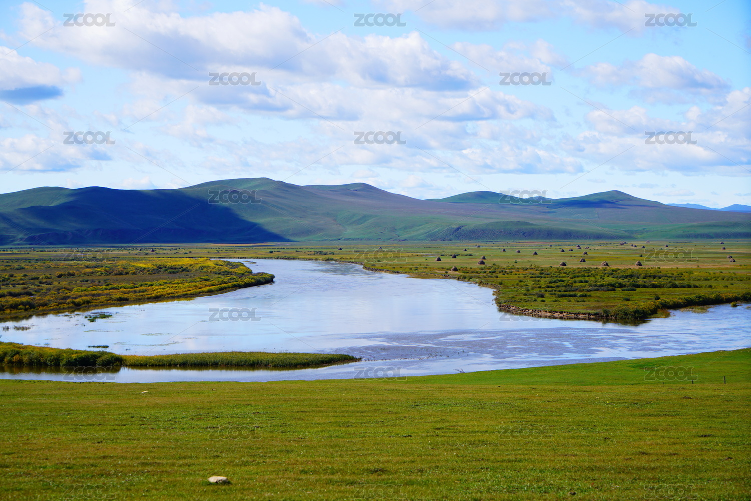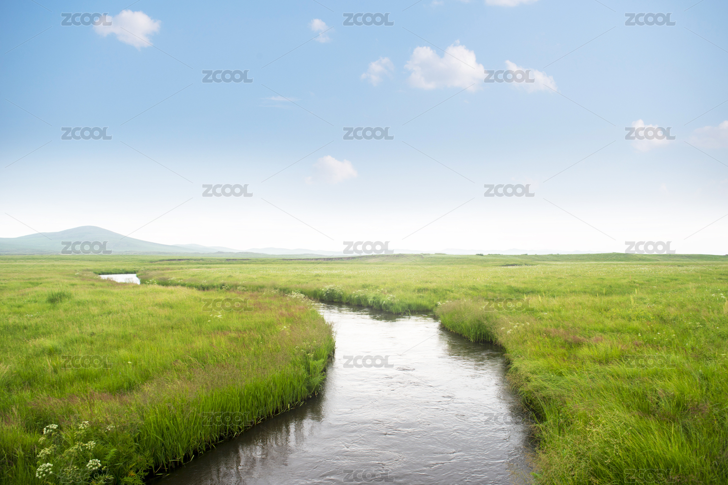 河流,草原,内蒙古,西乌旗,夏季,水,草地,绿色,天空,植物