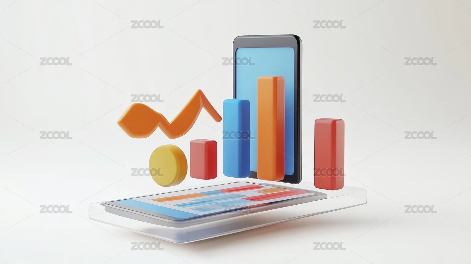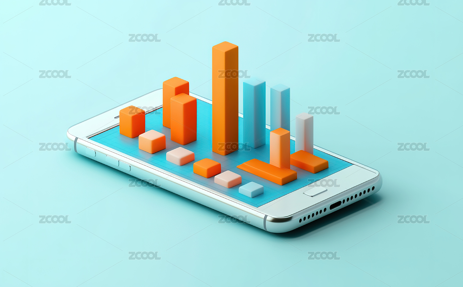 3d,插画,背景,商业,商务,插图,手机,利润,增长,市场