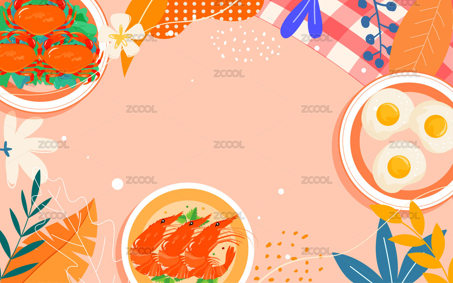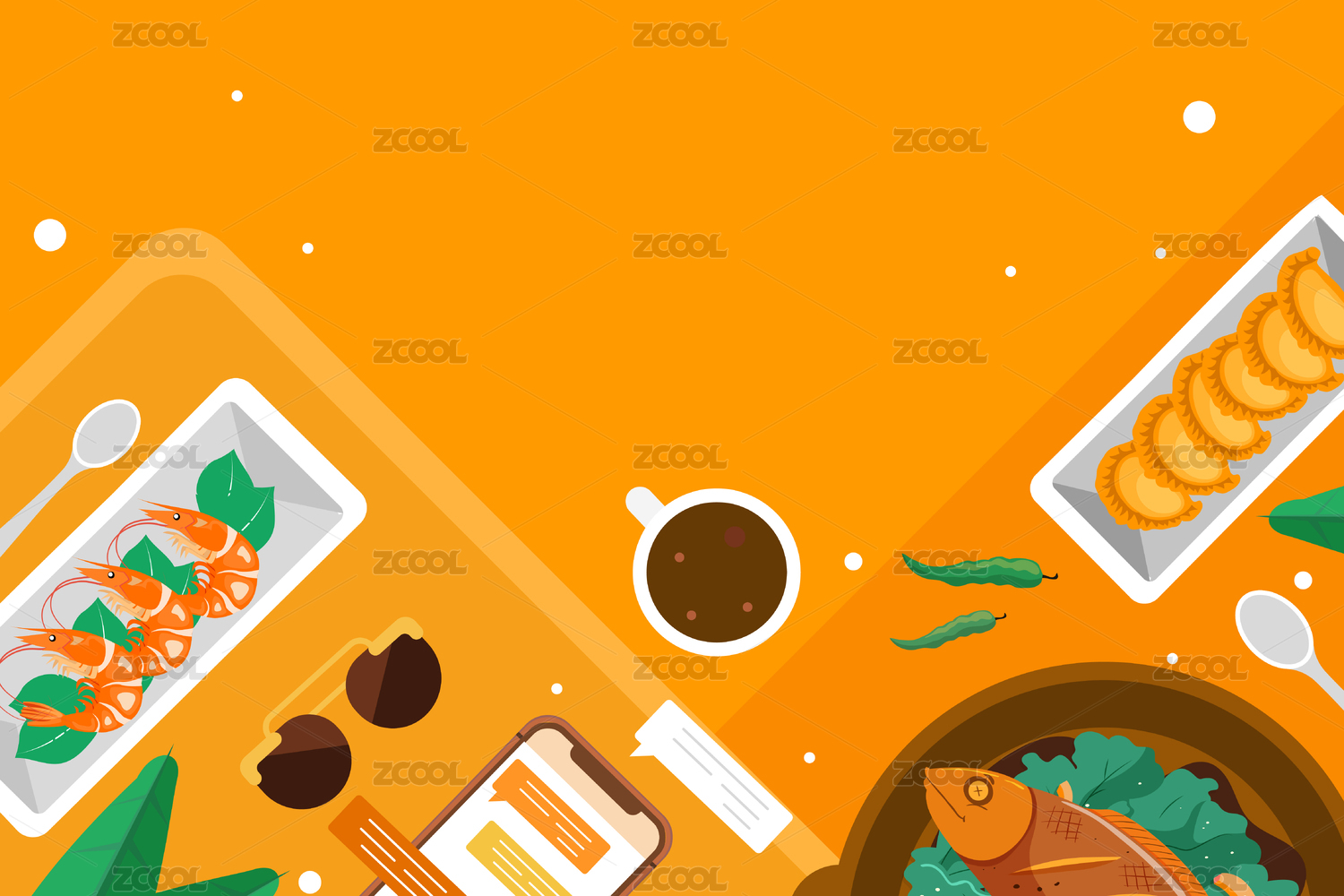 卡通团圆饭吃饭美食中餐外卖活动背景矢量插画