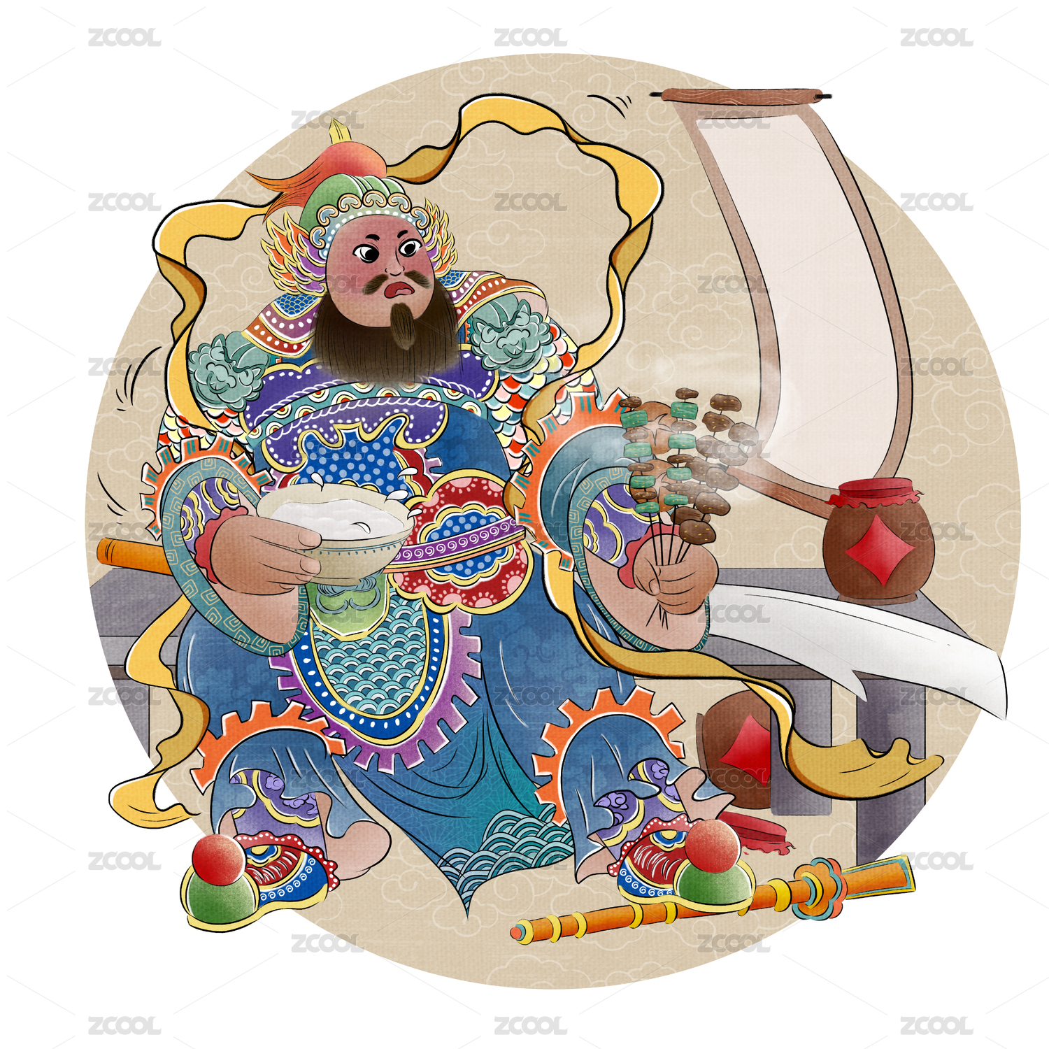 春节新年创意年画门神-吃串的门神