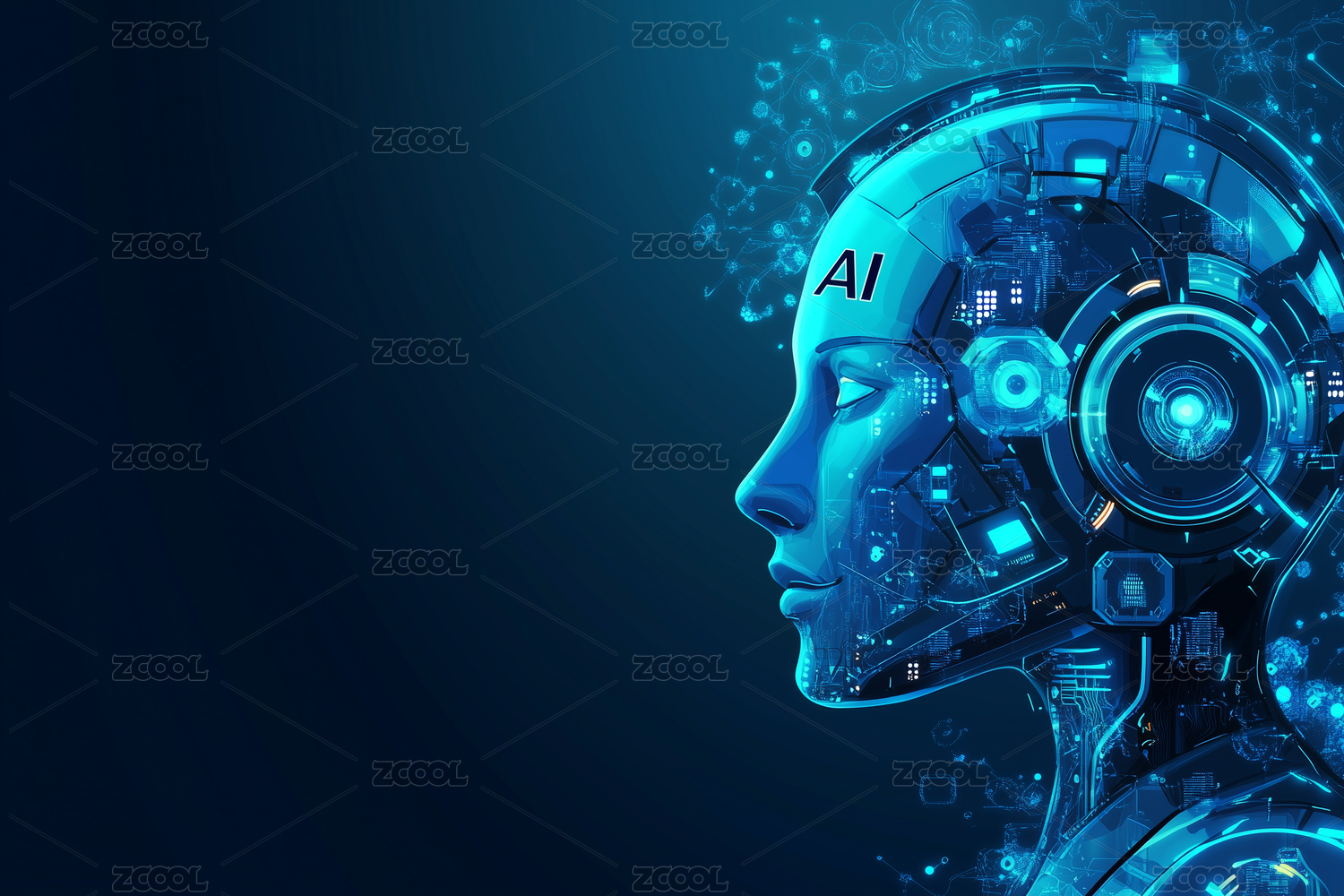 蓝色发光粒子生成人脸抽象虚拟人工智能插画