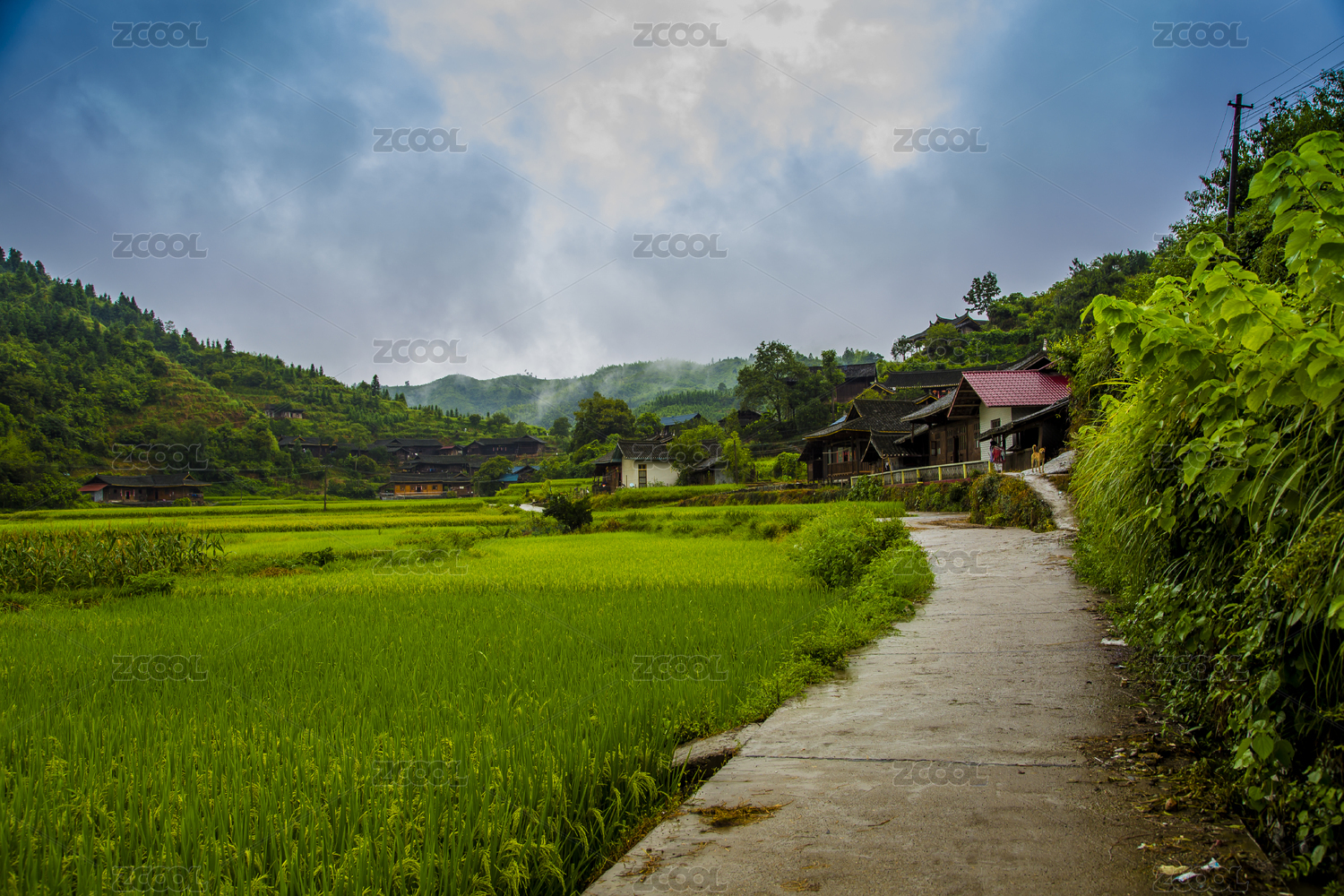 农村瓦房树林