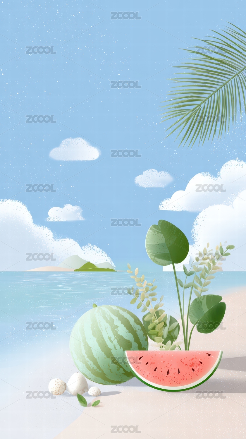 夏日海边西瓜清新风景
