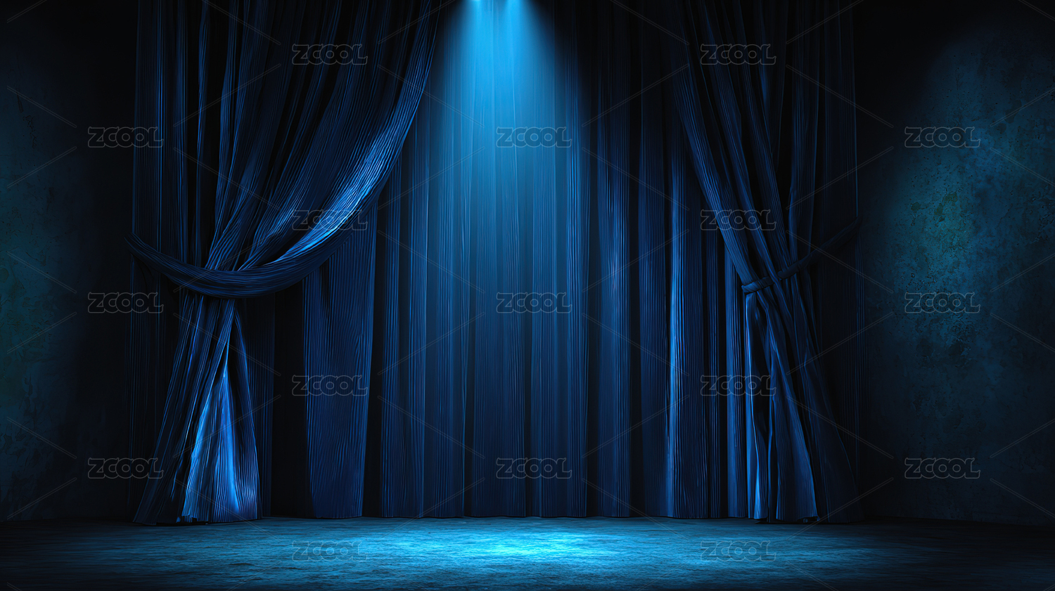 红色幕布舞台聚光灯演出华丽背景广告海报