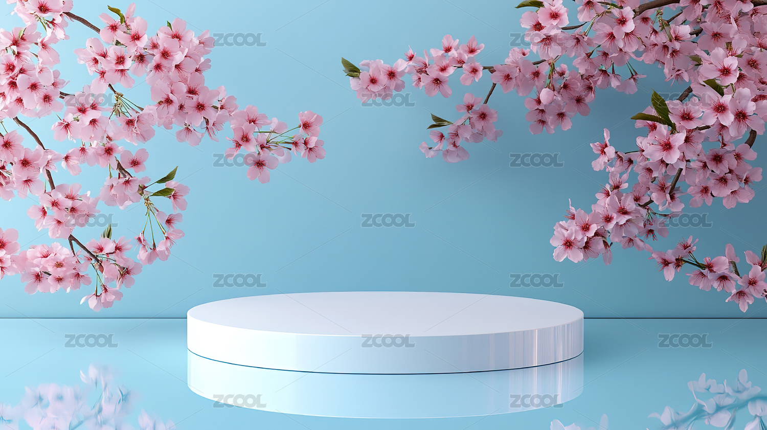 清新白色樱花讲台