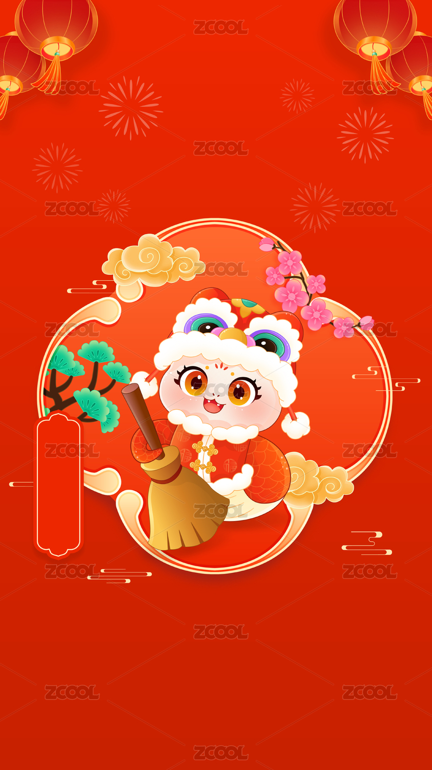 新年,春节,蛇年,2025年,蛇,卡通蛇,吉祥物,节日,灯笼,红色