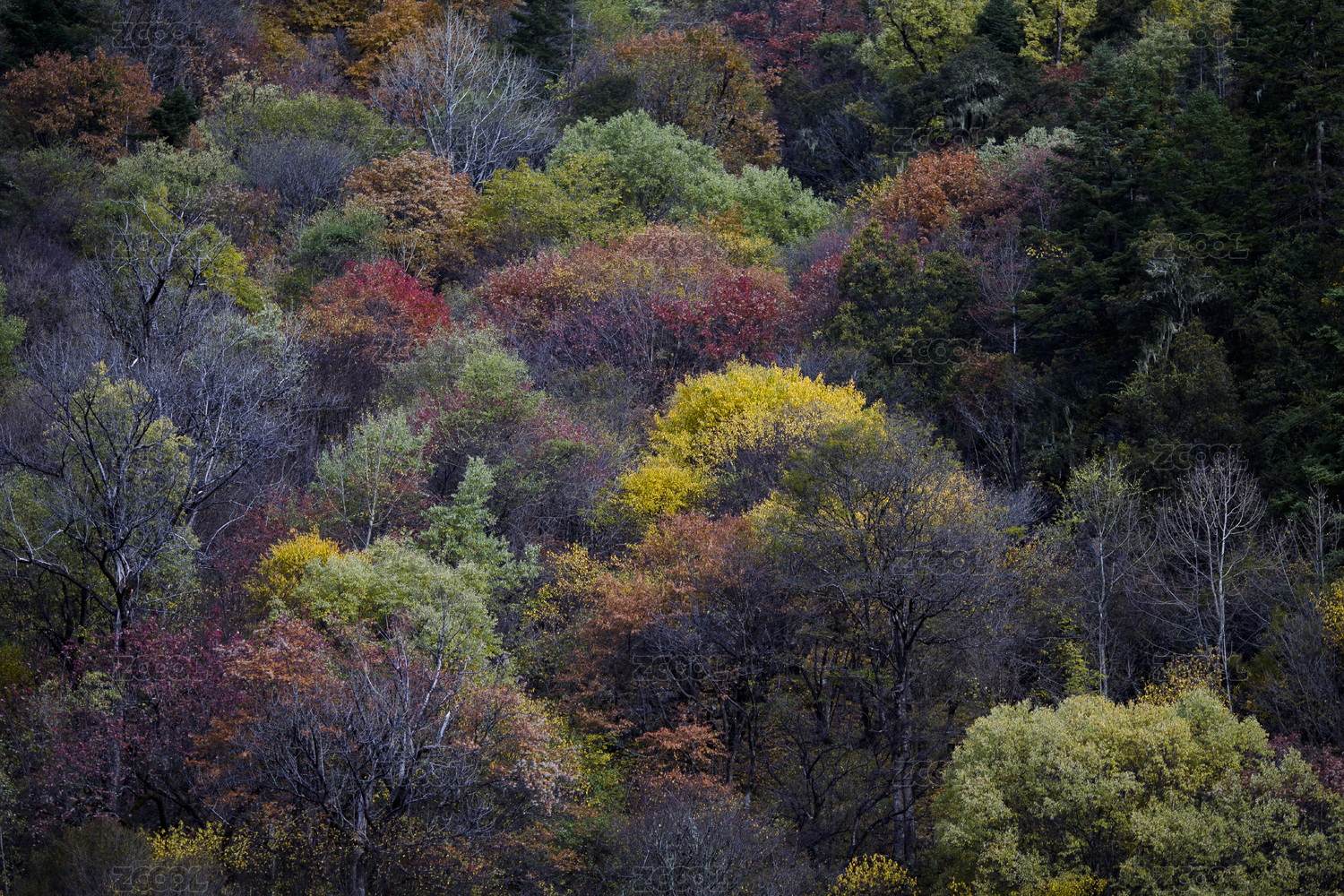 四川阿坝黑水县奶子沟秋色彩林自然景观